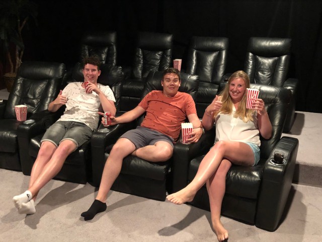 Als we terug zijn gaan we een film kijken in de bioscoopzaal van de villa. We kiezen een dvd uit het assortiment die men hier heeft. Er liggen wel 30 dvd’s waar we uit kunnen kiezen. Nadeel geen Nederlandse ondertiteling. We hebben Popcorn en M & M’s erbij en voordat je het weet is het alweer 12 uur. Bedtijd.