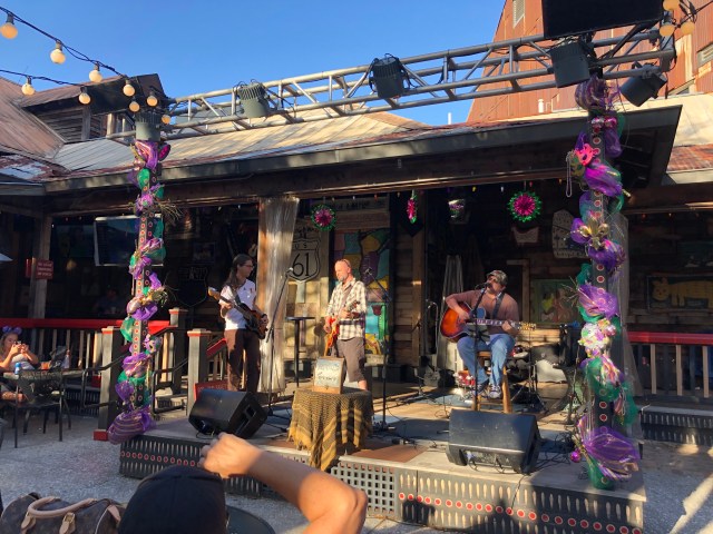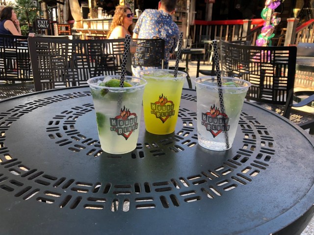 We gaan een cocktail drinken op het terras bij House of Blues. Alles staat hier in het teken van de muziek. Er begint daar ook een leuk bandje te spelen.