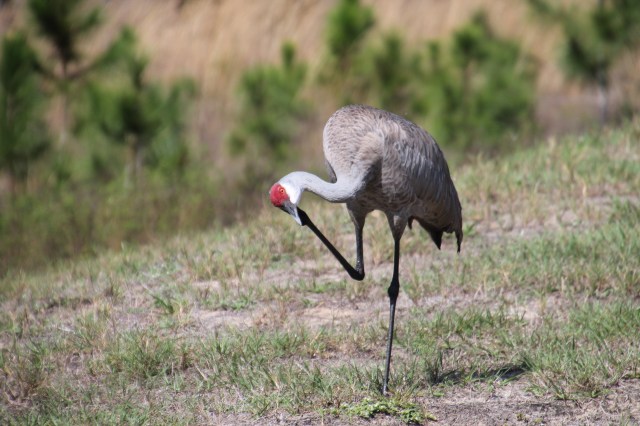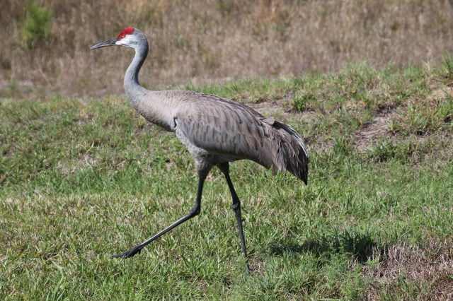 Bij ons huisje zien we nog een kraanvogel vlak voor ons zwembad lopen.