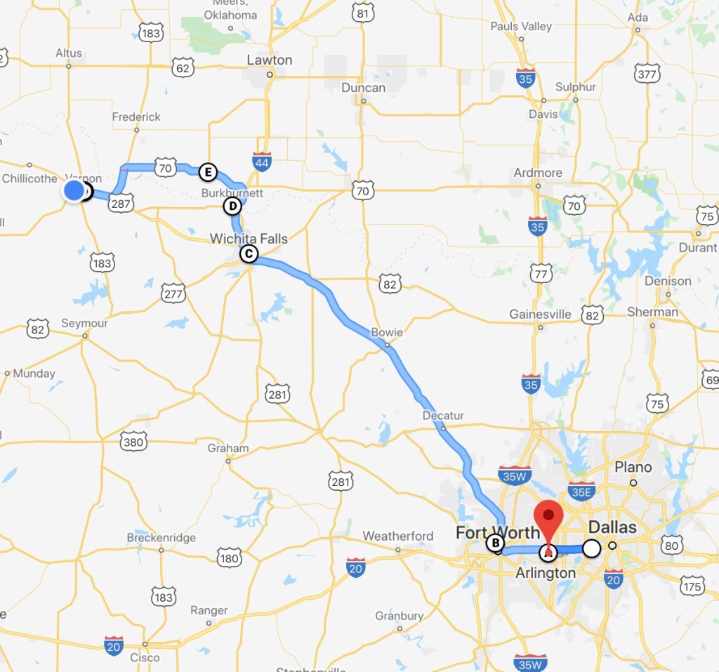 In het plaatsje Burkburnett gaan we even naar de McDonalds. Omdat we daar gratis internet hebben kunnen we een hotel boeken voor onze overnachting in Vernon.
