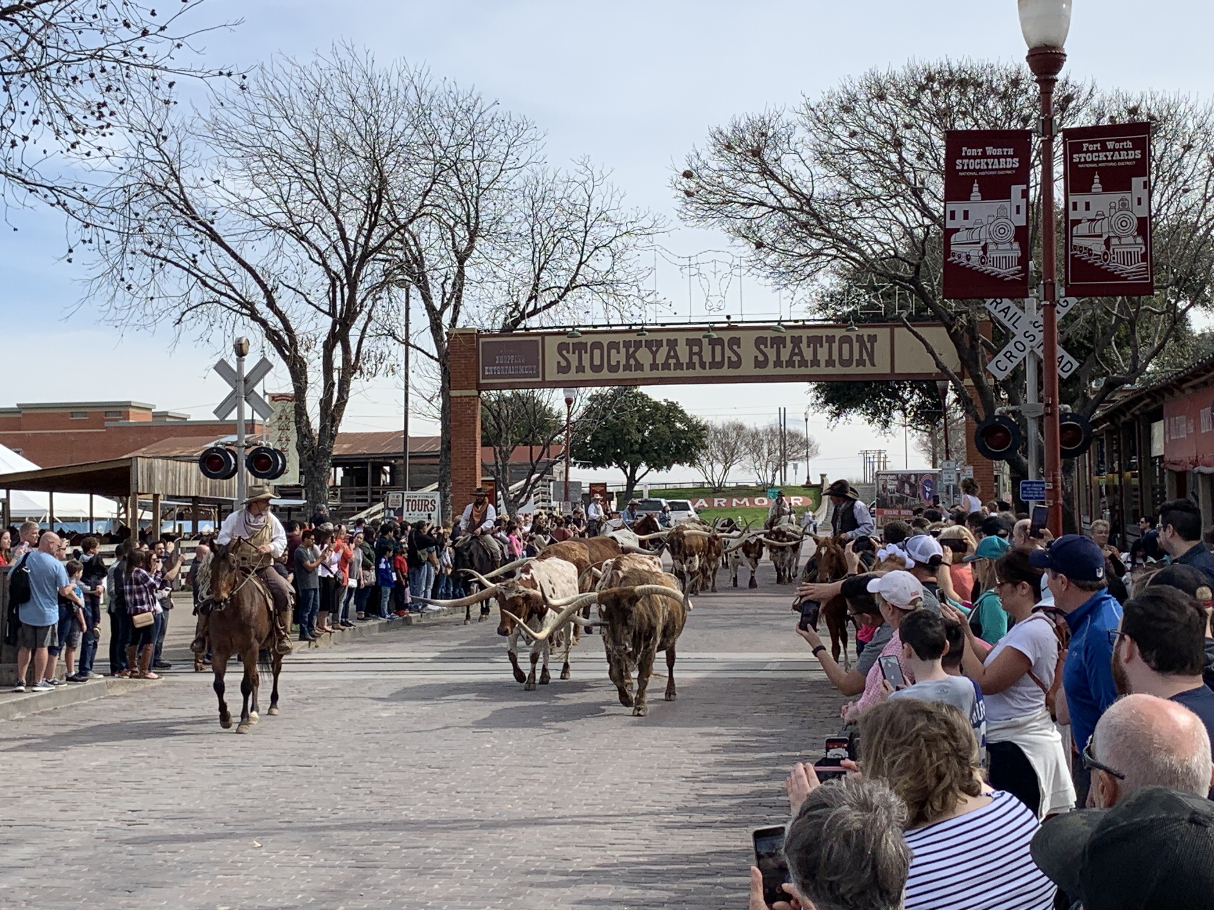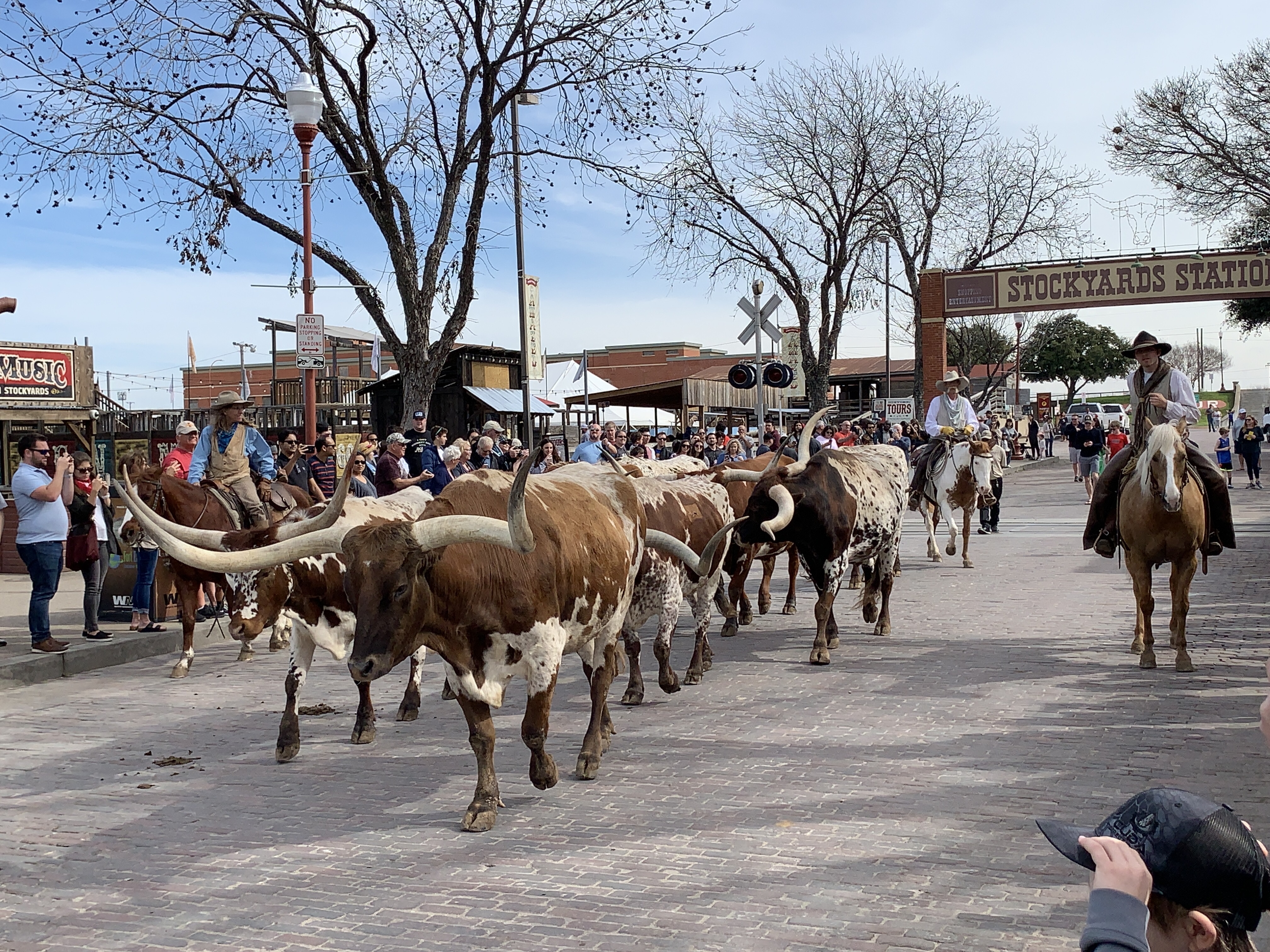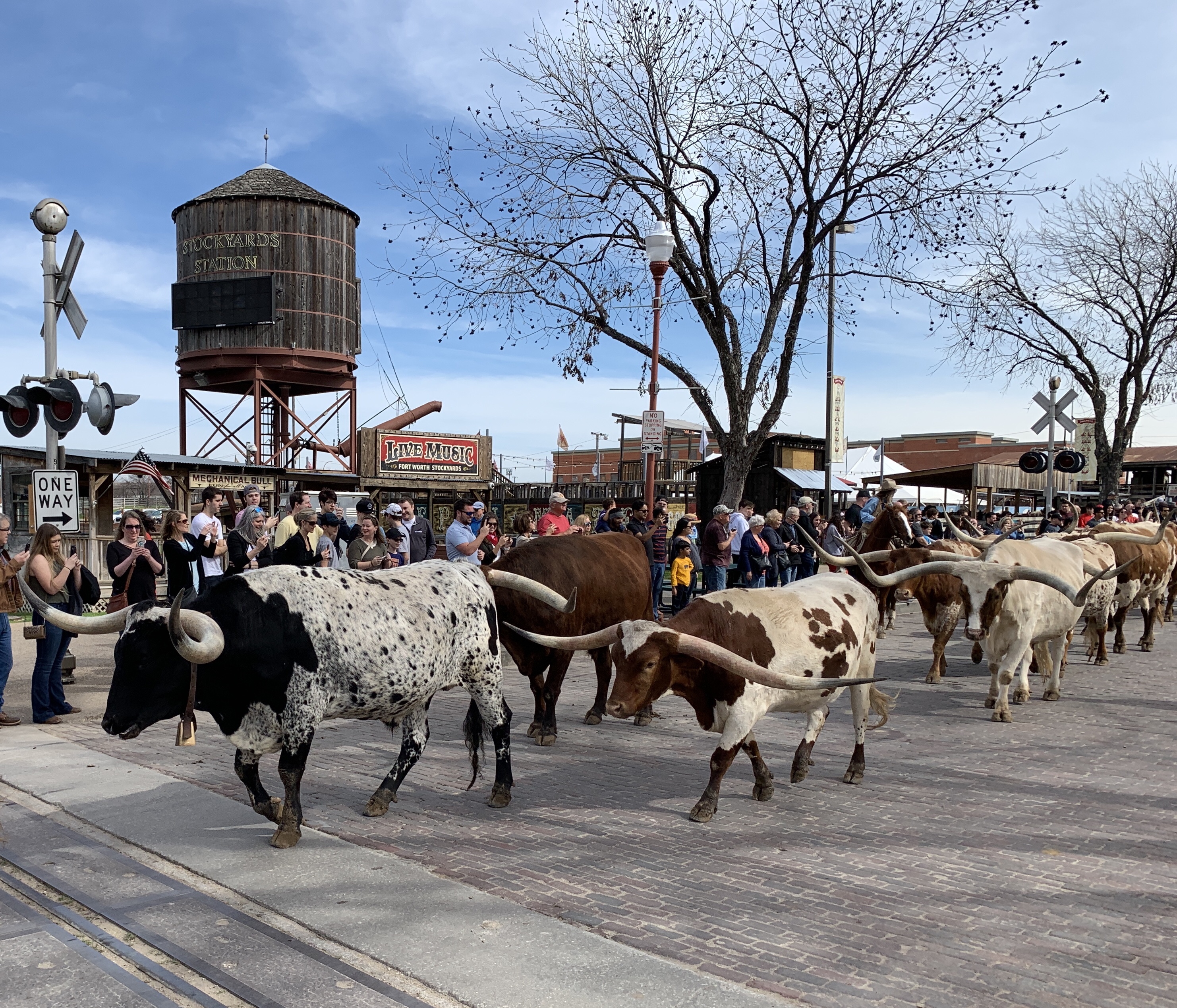 Nadat spoorwegen werden aangelegd werd een grote overslagplaats gesticht voor het verhandelen van vee. De historische veemarkt heet Stockyards. Tweemaal per dag is er een ‘cattle drive’: cowboys drijven hun vee (longhorns, in dit geval) over Exchange Avenue.