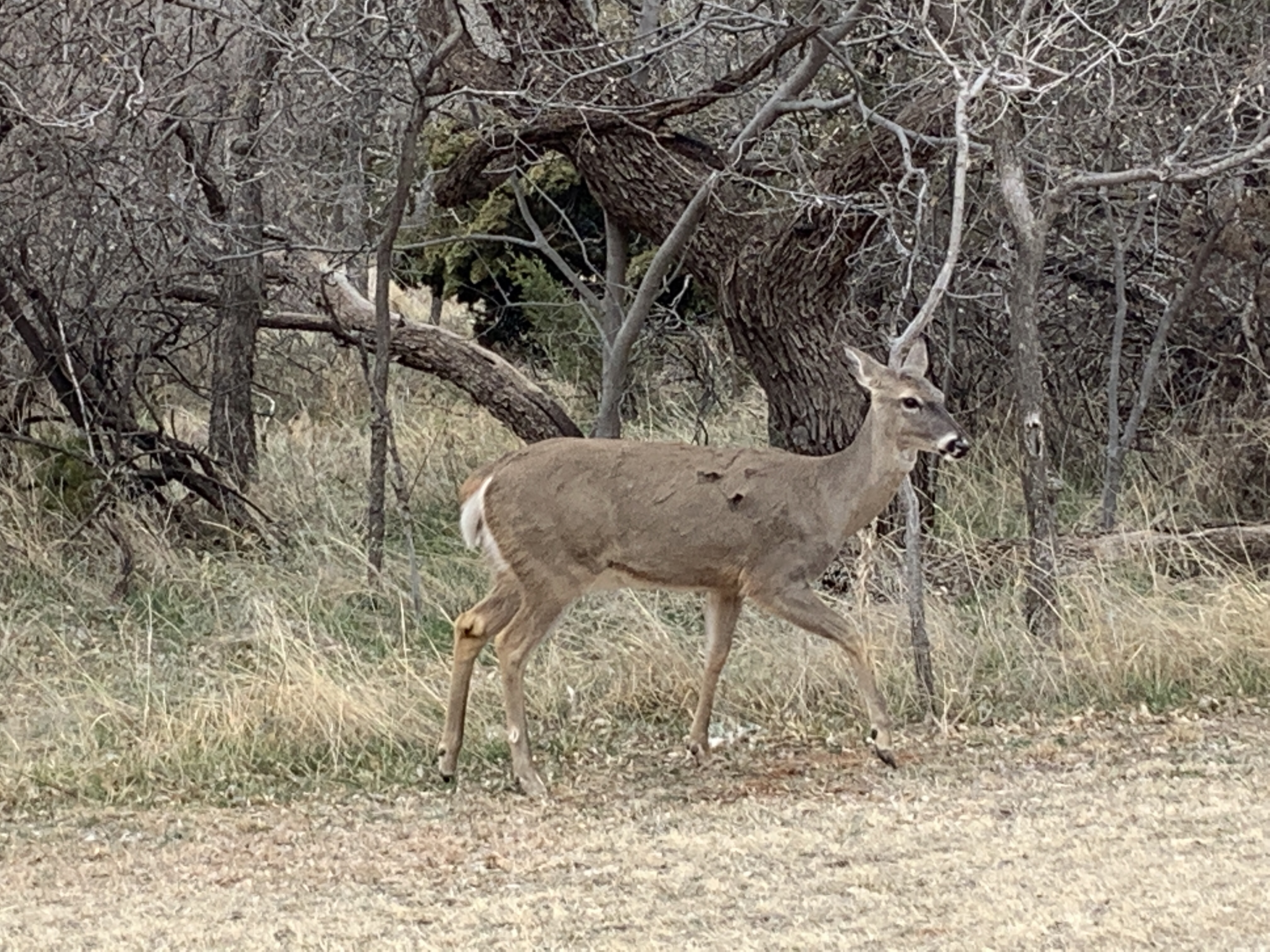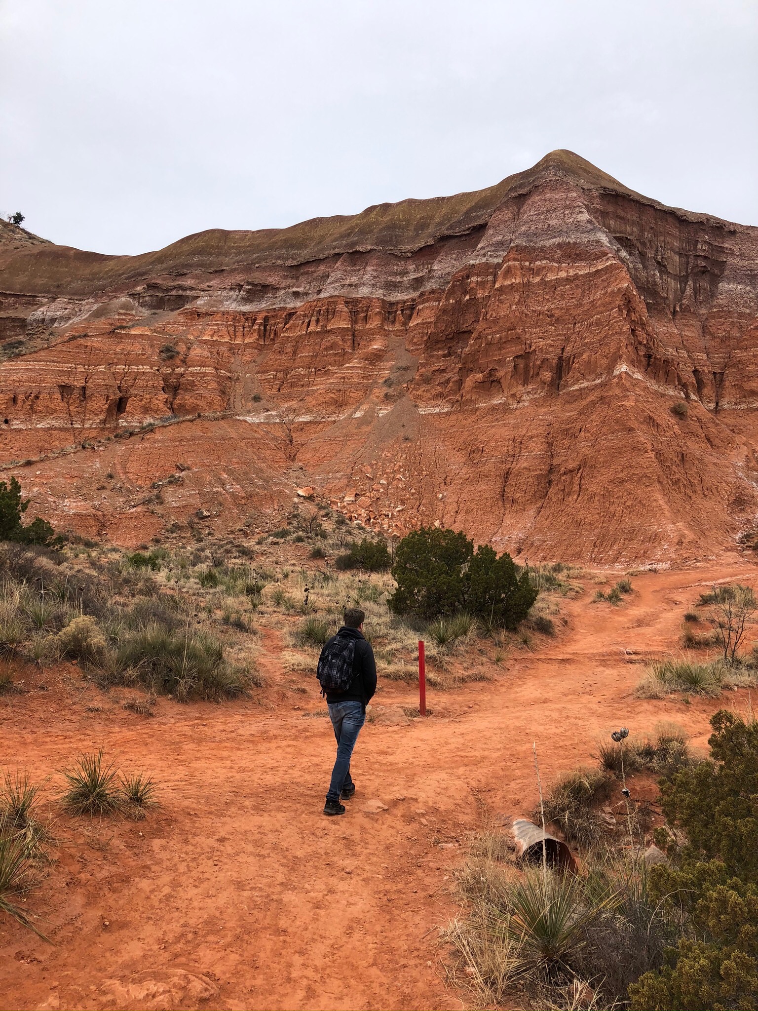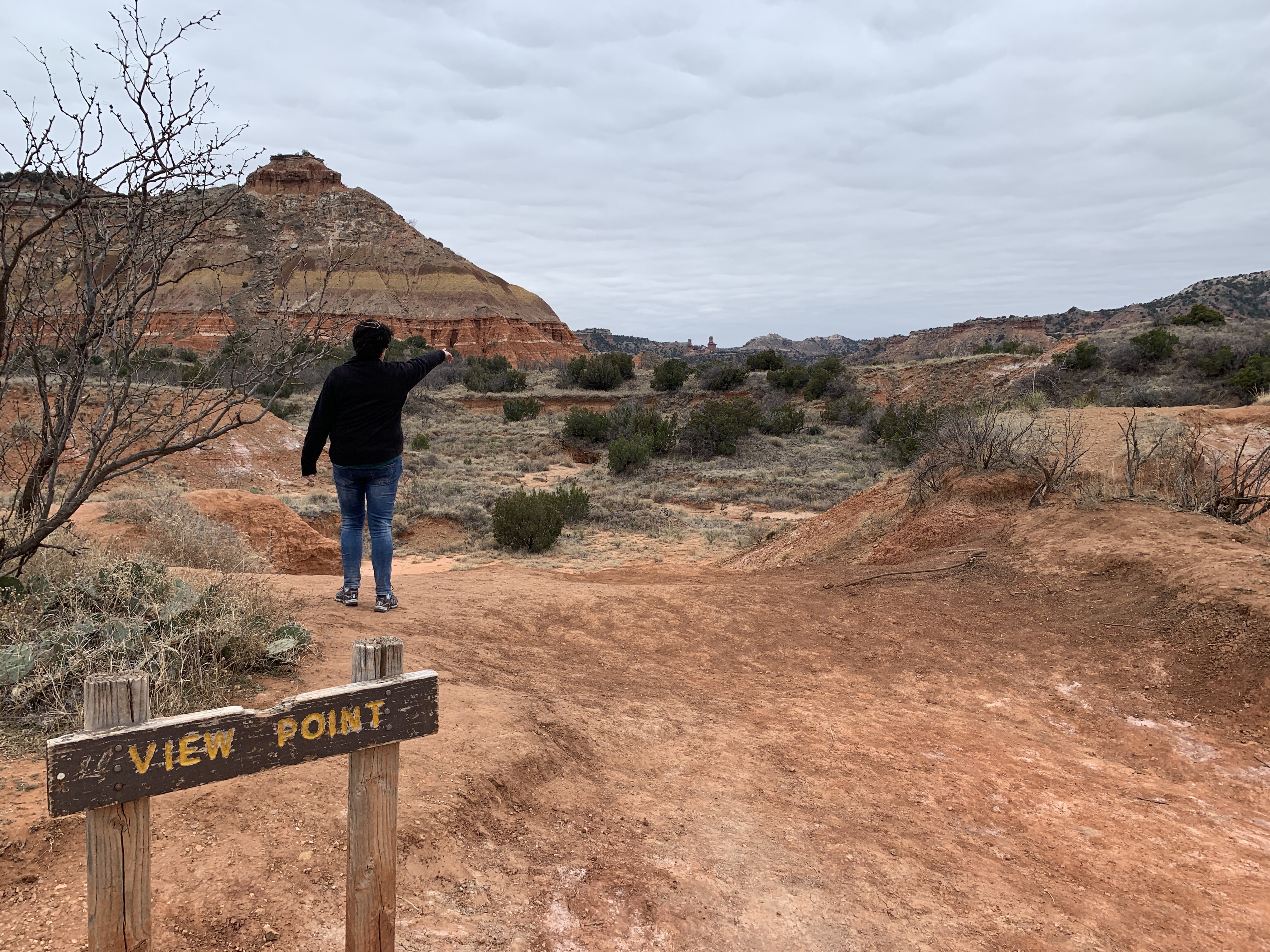 Om 10 uur zijn we vertrokken uit het hotel. Buiten is het maar 1 graad, koud dus. Dit maal geen lange rit. We hoeven nu alleen de weg maar uit te rijden en dan komen we bij het Palo Duro Canyon State Park. Enige is dat je dan wel de goeie kant moet oprijden, dat deden we dus niet. Toen de weg ophield bij een kruising kwamen we erachter dat we de verkeerde kant op waren gegaan. Dus omdraaien en de goeie kant op. Eerst een heel stuk over de vlakte en dan in eens doemt de Palo Duro Canyon op. Om half 11 komen we aan in het park.