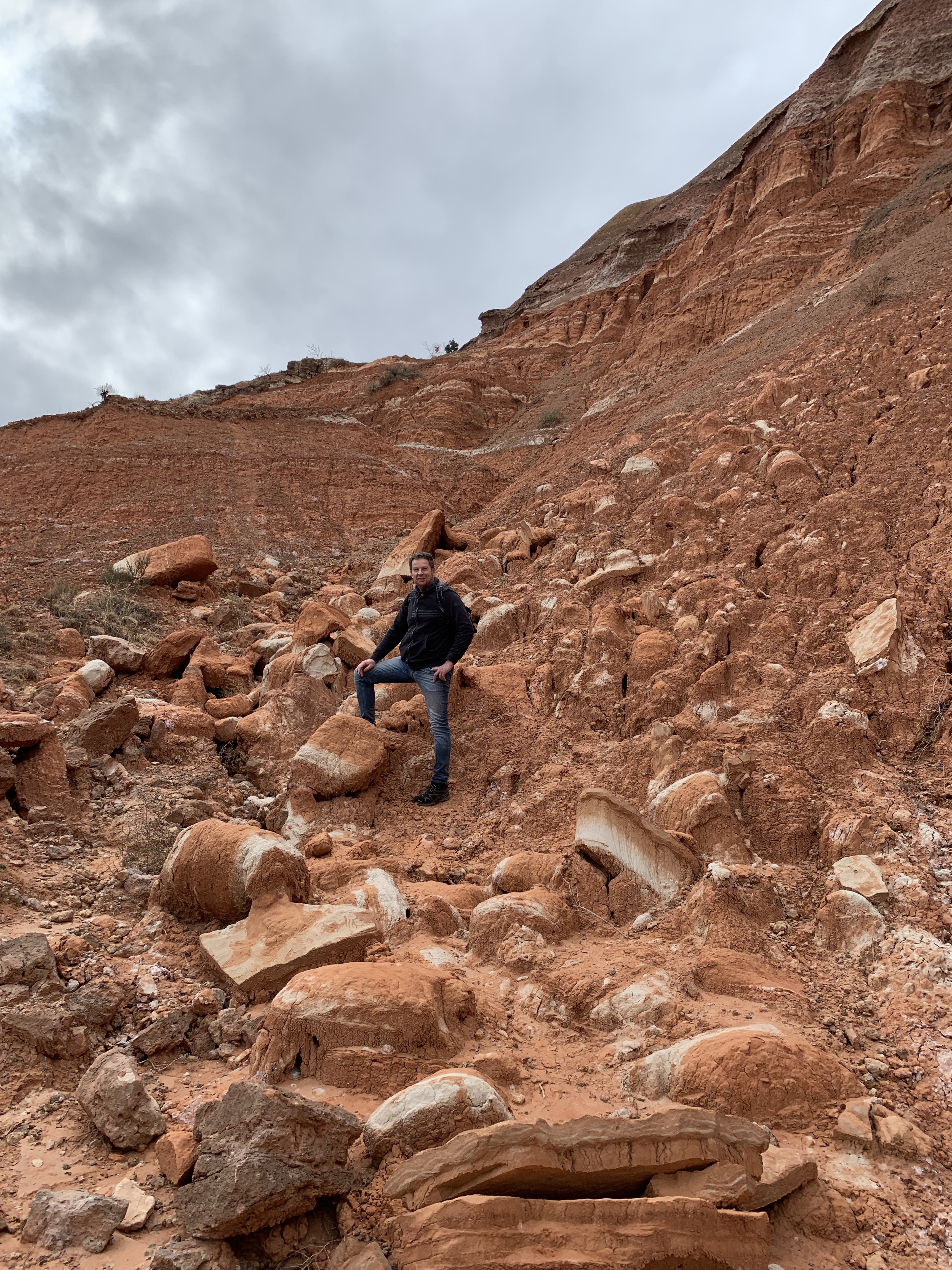 Maar de laatste 500 meter naar de rotsformatie begint het echte werk echt. Het flink omhoog klauteren. Ingrid besluit om niet helemaal naar boven te gaan. Harry gaat het wel proberen. Het uiteindelijk uitzicht op de rotsformatie en omgeving is voortreffelijk mooi. De hoogte van de 2 zogenaamde Hoodoo’s is ca. 90 meter.