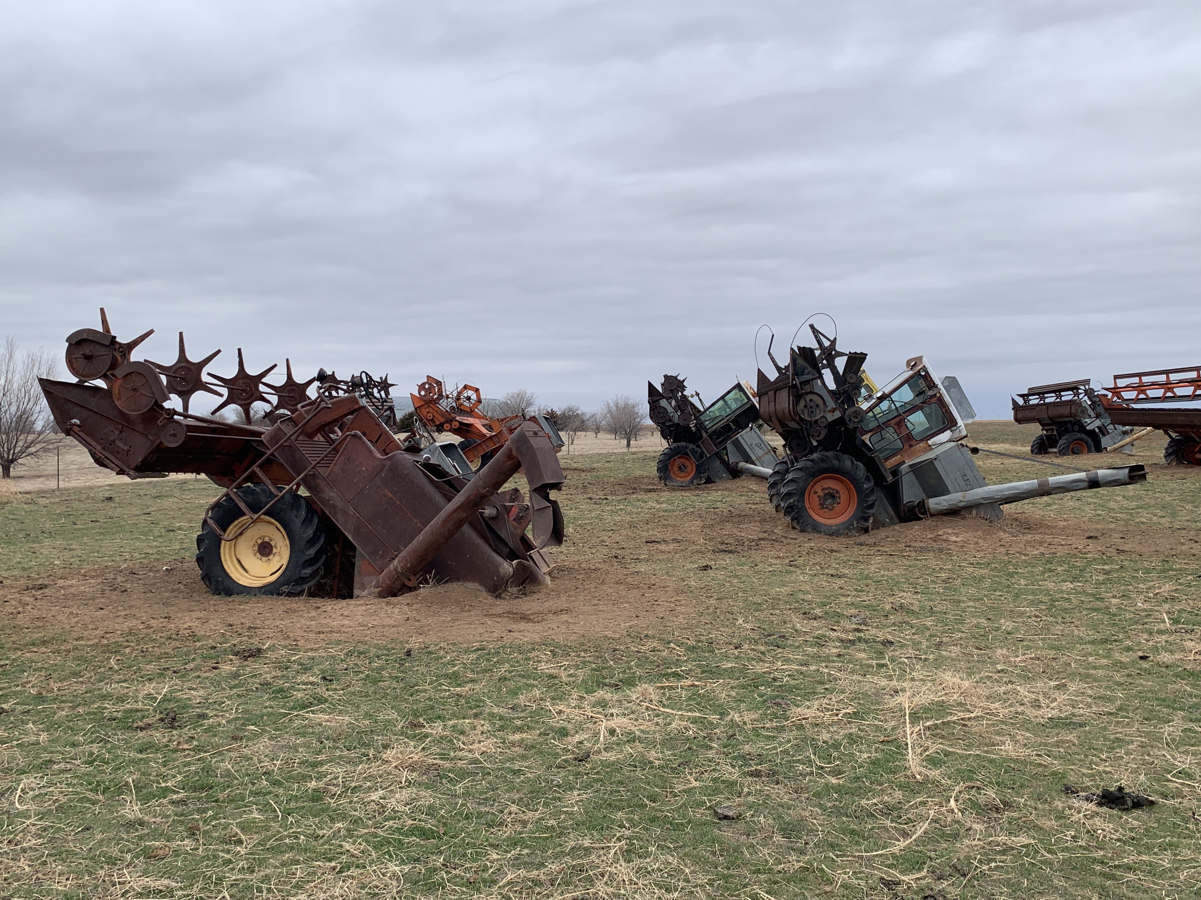 We wilden eigenlijk nog naar Tucumcari rijden, maar het wordt te laat om daar nog naar toe te rijden. We besluiten dan ook om in Amarillo te overnachten. Eerst doen we nog een ommetje langs Combine City. Langs de E Farm to Market road staan op den duur allemaal oude combines schuin in de grond.