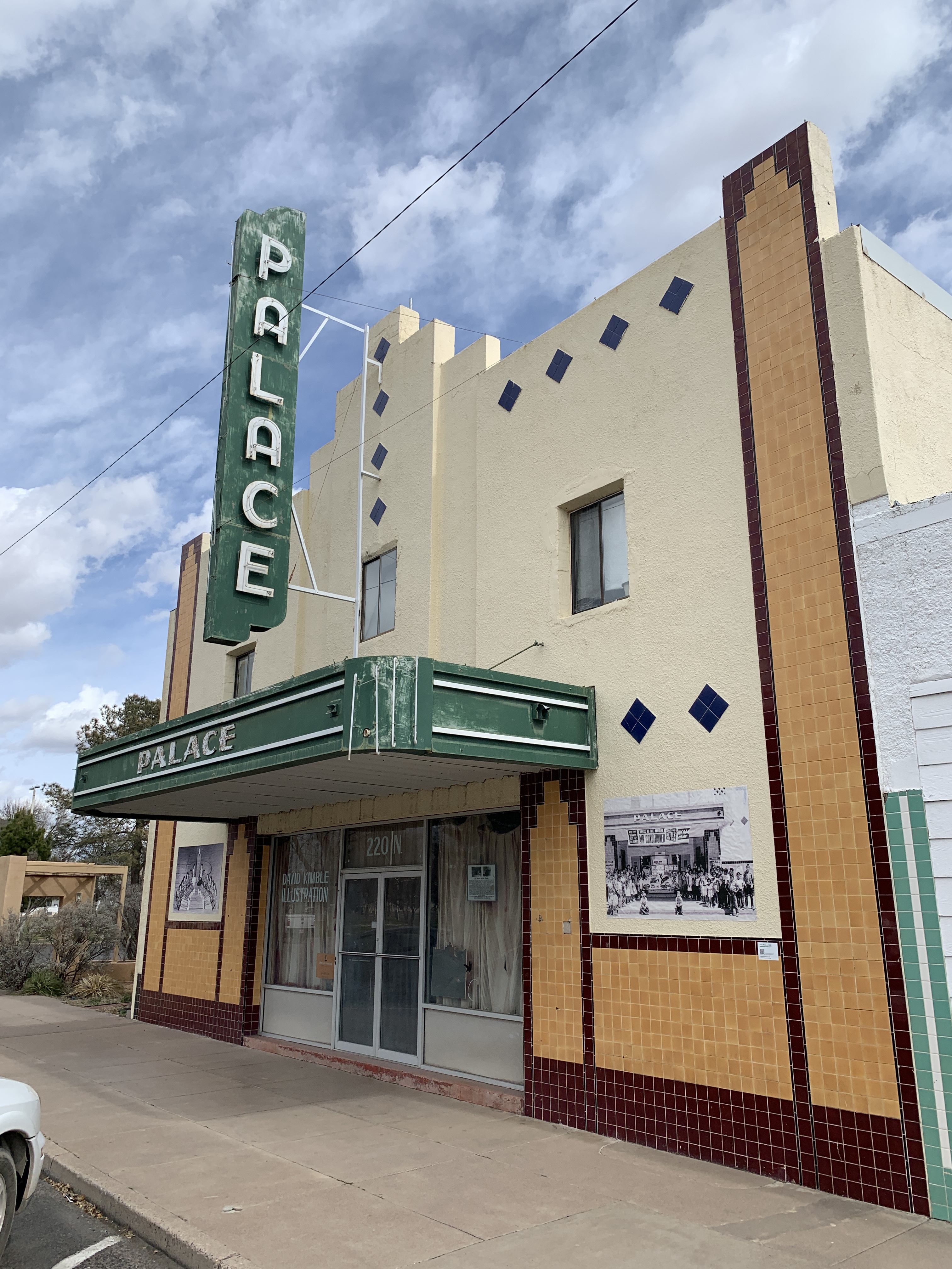We komen om 12 uur in Marfa aan. Het is er erg stil. We parkeren de auto in het centrum en lopen een rondje langs wat gebouwen. We maken wat foto’s.