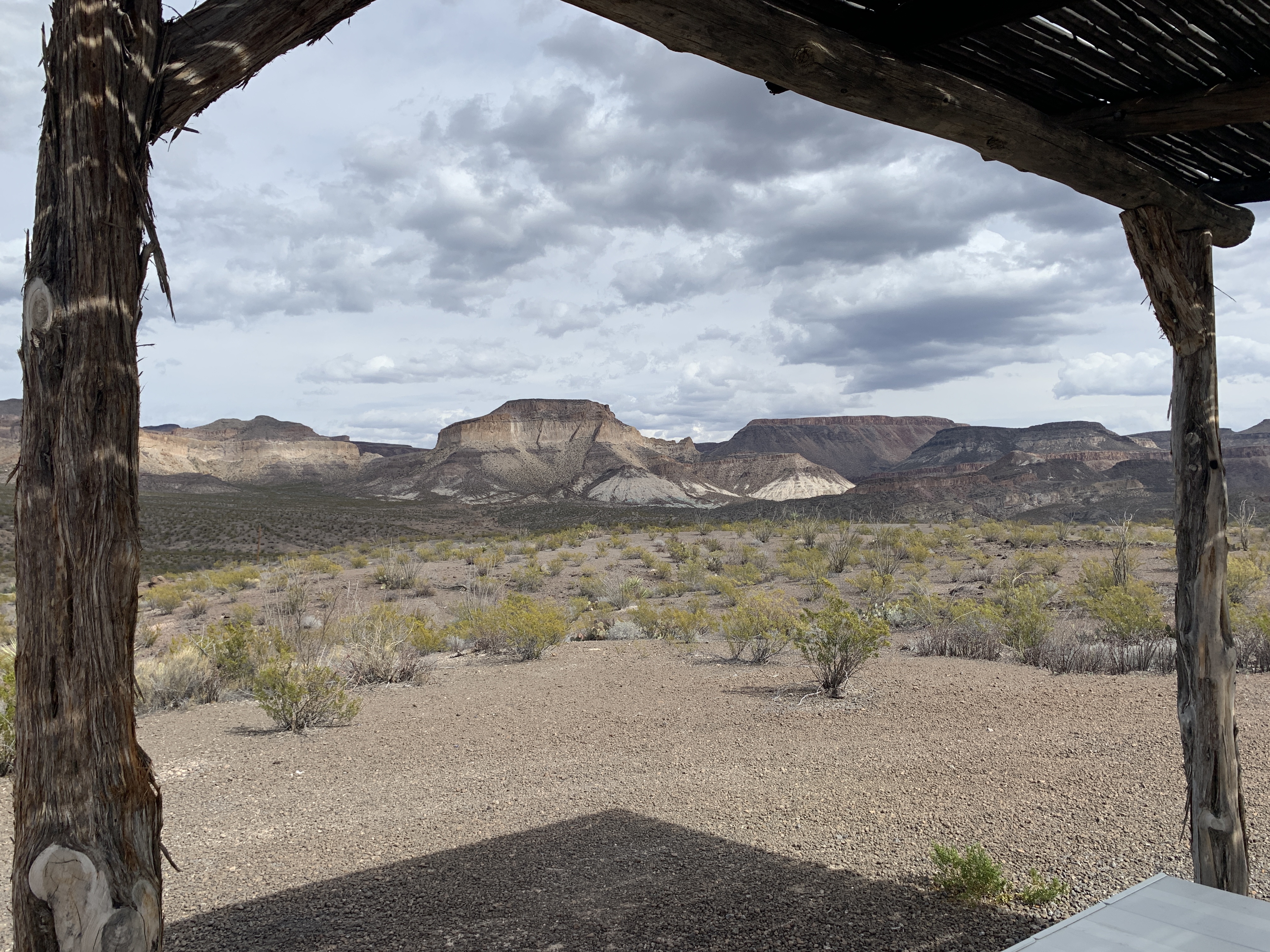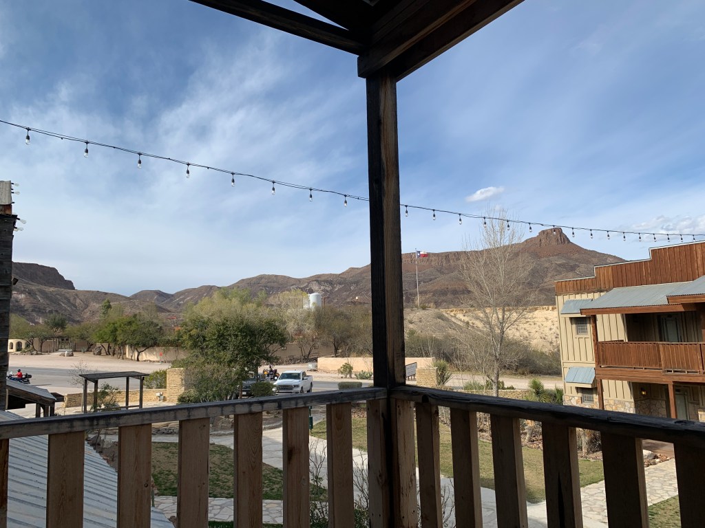 Uiteindelijk komen we om 15.45 uur aan bij Lajitas. Daar overnachten we aan de rand van Big Bend National Park in het Lajitas Golf Resort. We hebben ditmaal zelfs een kamer met balkon. We drinken op het balkon onze koffie op met een mooi uitzicht op de omgeving.