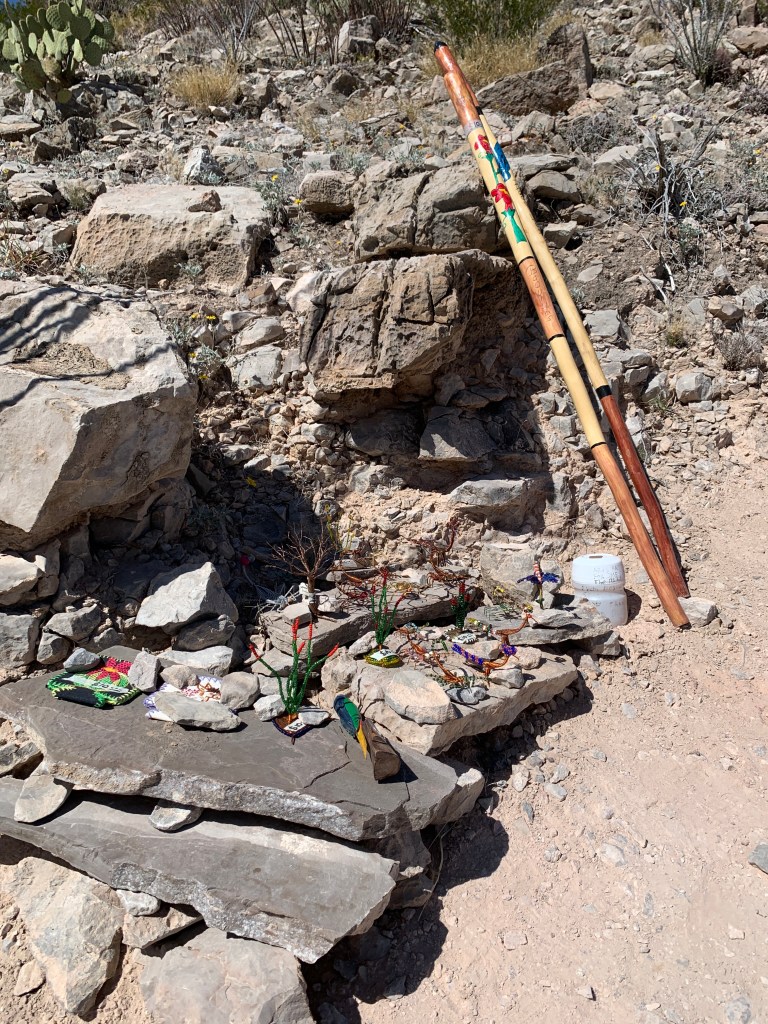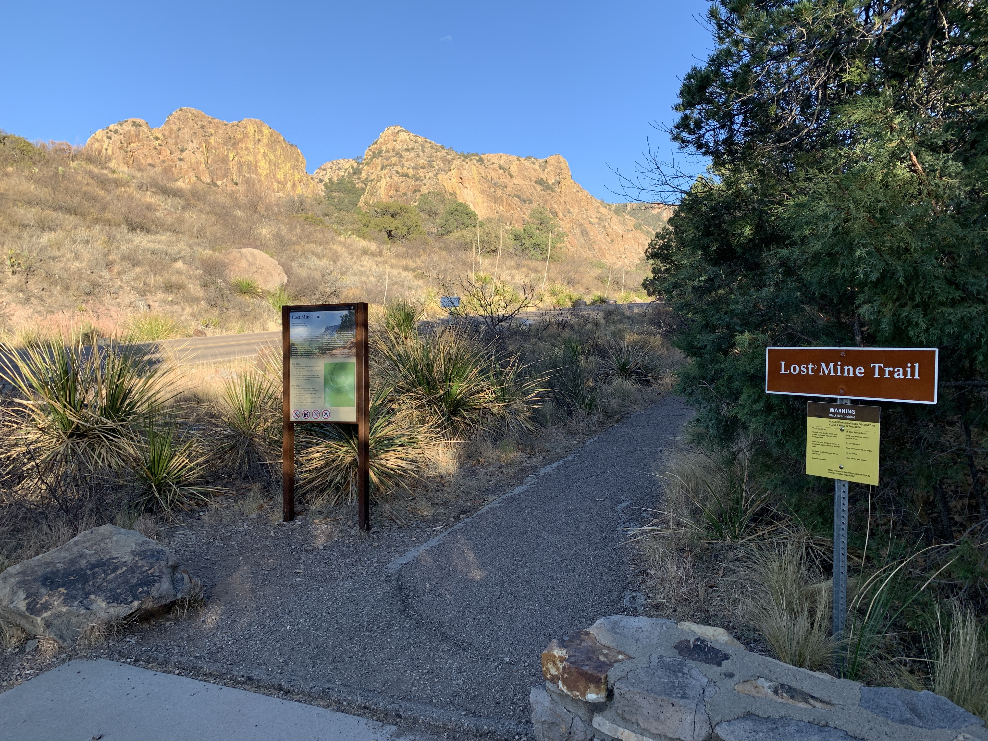 Het is inmiddels 17.00 en rijden terug naar Chisos Basin. We stoppen nog even bij de parkeerplaats van de Lost Mine Trail. We lopen een klein stukje om wat foto’s van de bergen van Chisos Basin te maken. Het waait inmiddels erg hard.