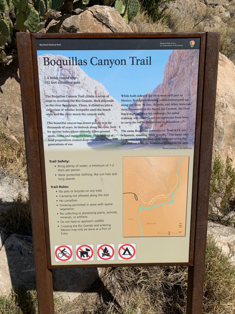 De volgende stop aan deze weg is bij Boquillas Canyon. We doen de Boquillas Canyon Trail.