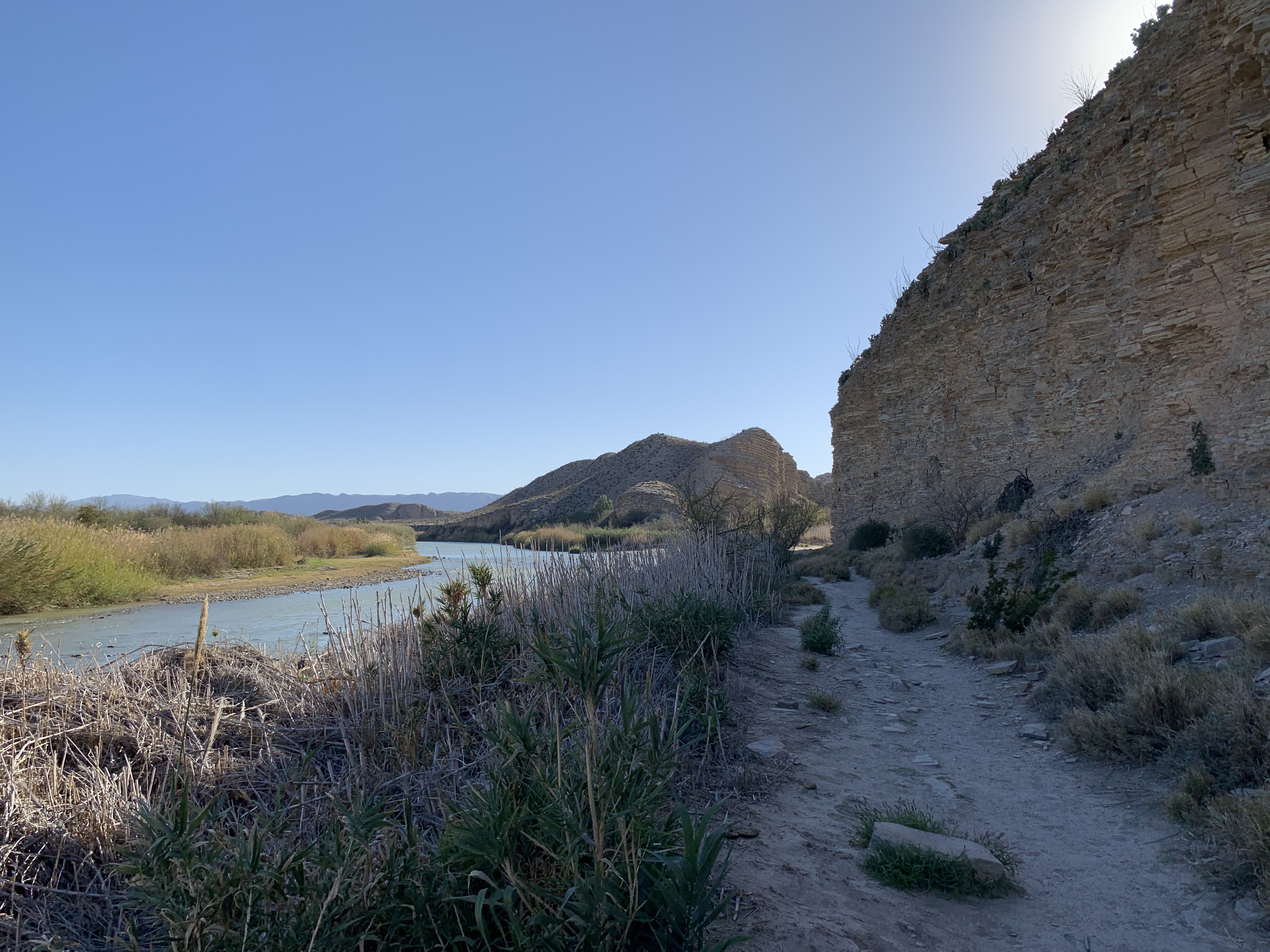 We rijden verder naar een camping waar een wandeling start, de Rio Grande Nature Trail. Het is een mooie wandeling over een paar bruggen en gaat verder naar een heuvel waar van je boven een prachtig uitzicht hebt op de Rio Grande rivier.