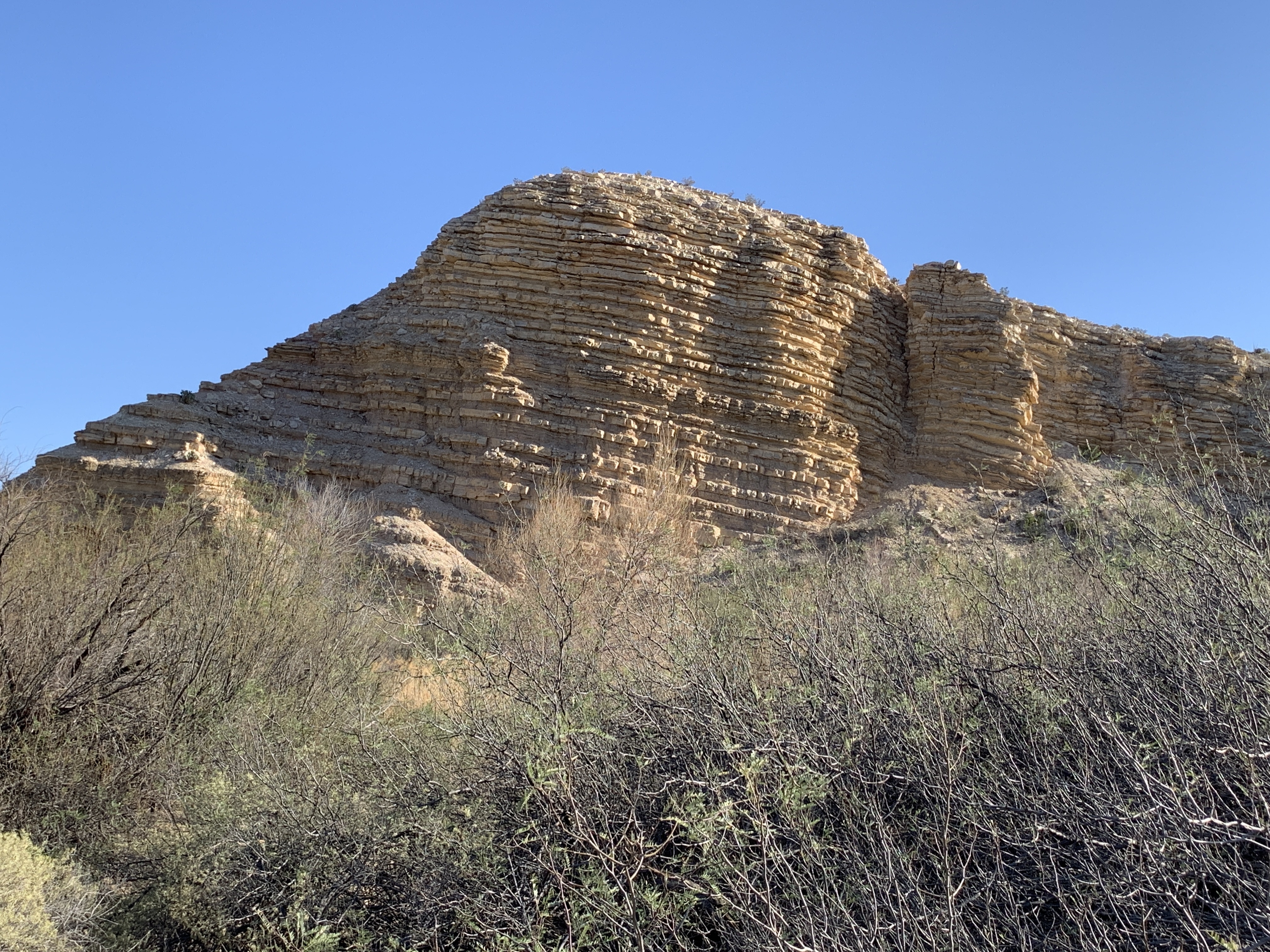 Deze wandeling gaat een stukje omhoog en daalt later af naar de oever van de Rio Grande. Je hebt daar een prachtig uitzicht op de steile canyonwanden waar de rivier door heen stroomt. We doen over de 2.4 km ca. 50 minuten. We zien nog een roadrunner.