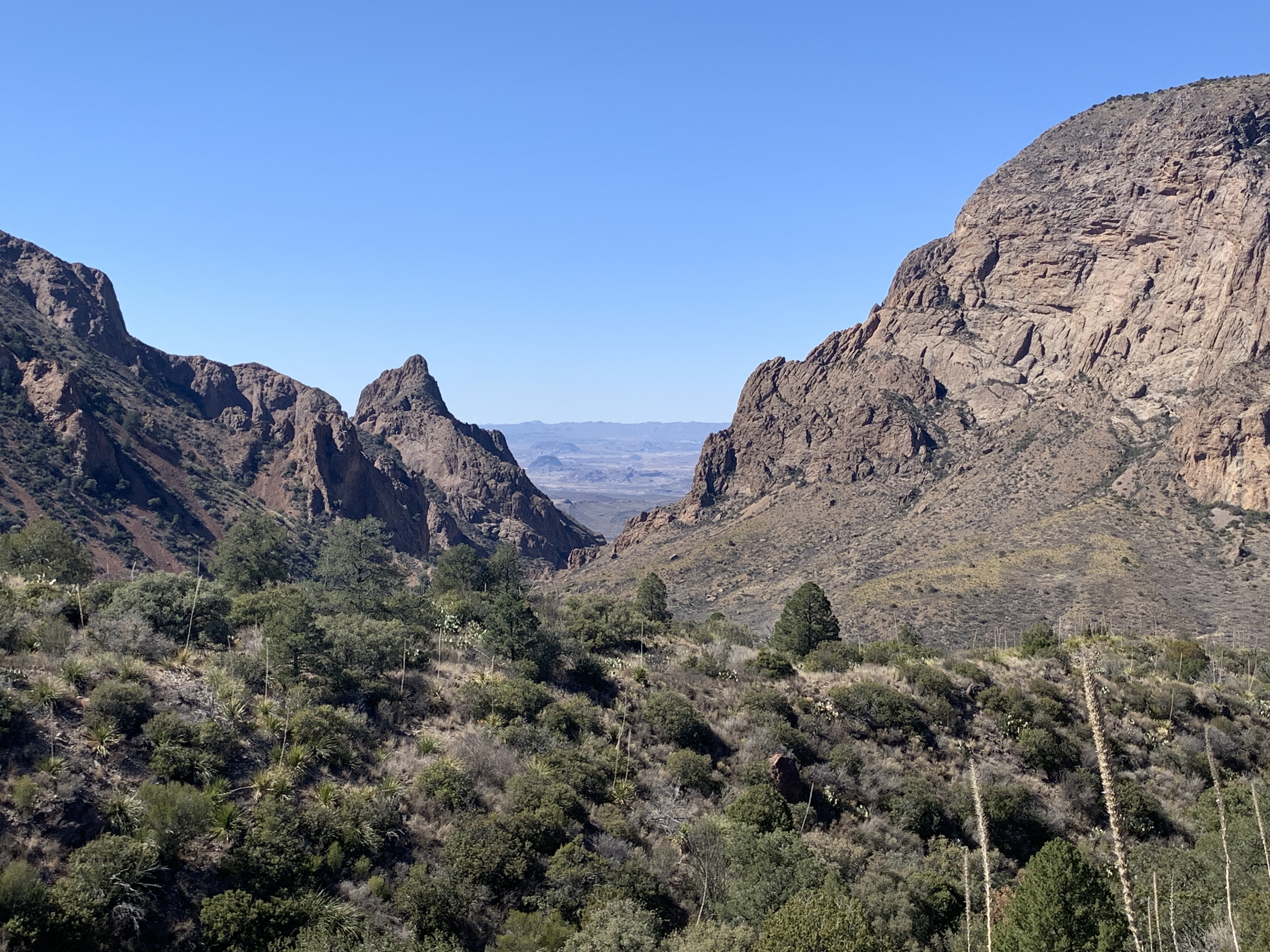 Om half 2 zijn we terug. We gaan even lunchen in het restaurant. Het eten smaakt hier prima. Na het eten gaan we de Window View trail lopen. Deze is ca. 500 meter en loopt over een mooi verhard pad met uitzicht op de bergen van het Chisos Basin. Je kijkt tussen twee bergwanden door naar het dal erachter.
