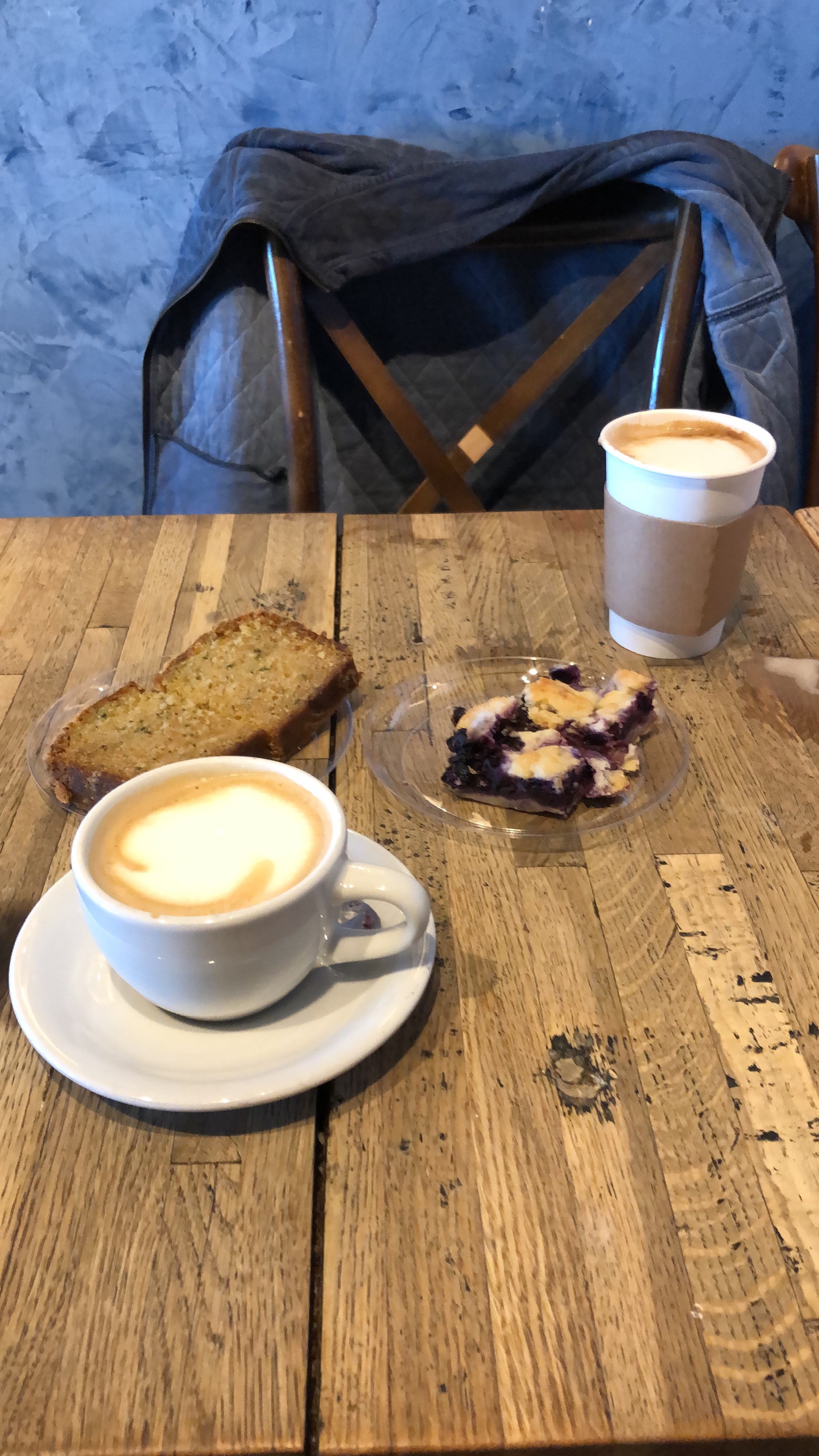 Om 20 over 10 komen we aan in Marathon. We drinken koffie met cake bij V6 Café & Gift Shop.