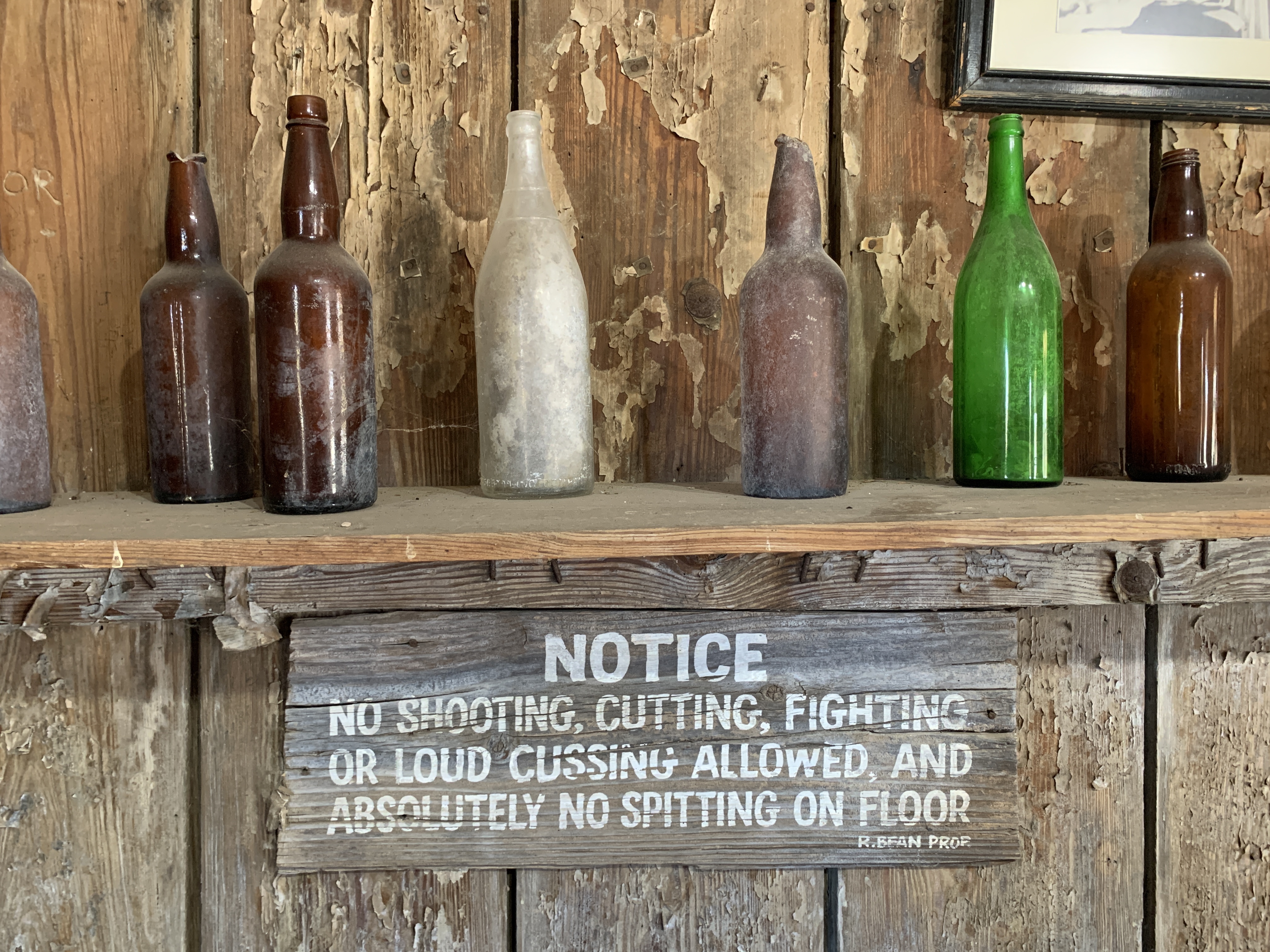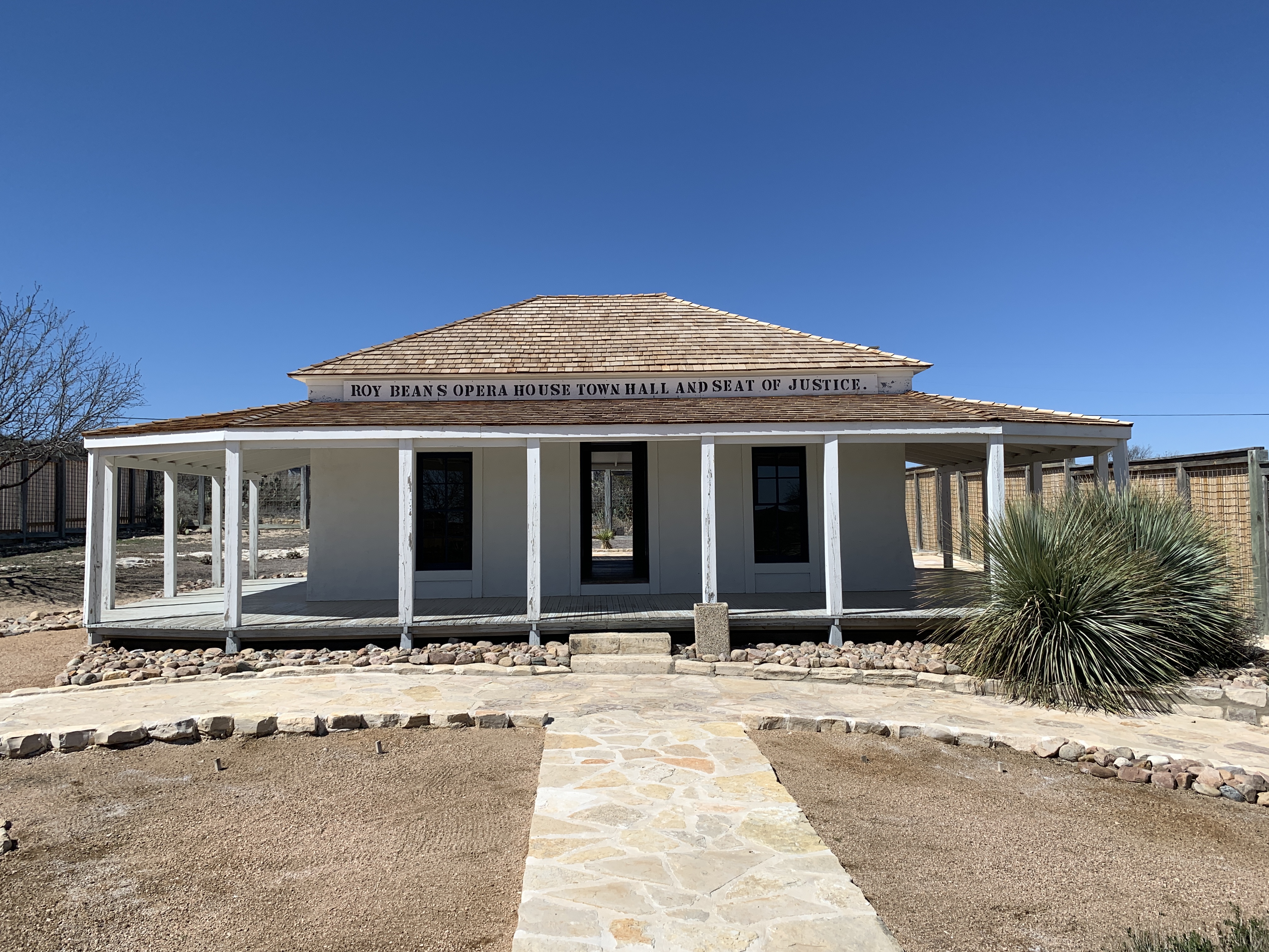 We komen om 12.45 in Langtry aan. In Langtry staat het Judge Roy Bean museum. Roy Bean (1825-1903) was een bijzondere rechter in deze regio. Hij had zijn saloon daar en beoefende de wet ten westen van de Pecos River. De kleine rechtbank was tevens een saloon waar hij drank verkocht en mensen konden biljarten. Hij was verliefd op de Engelse actrice Lily Langtry. Daar heeft hij het plaatsje naar vernoemd. We kijken rond in het prachtige Visitor Center. We nemen meteen folders mee van de regio in Texas waar we de komende dagen gaan vertoeven. Om 13.30 uur gaan we verder.