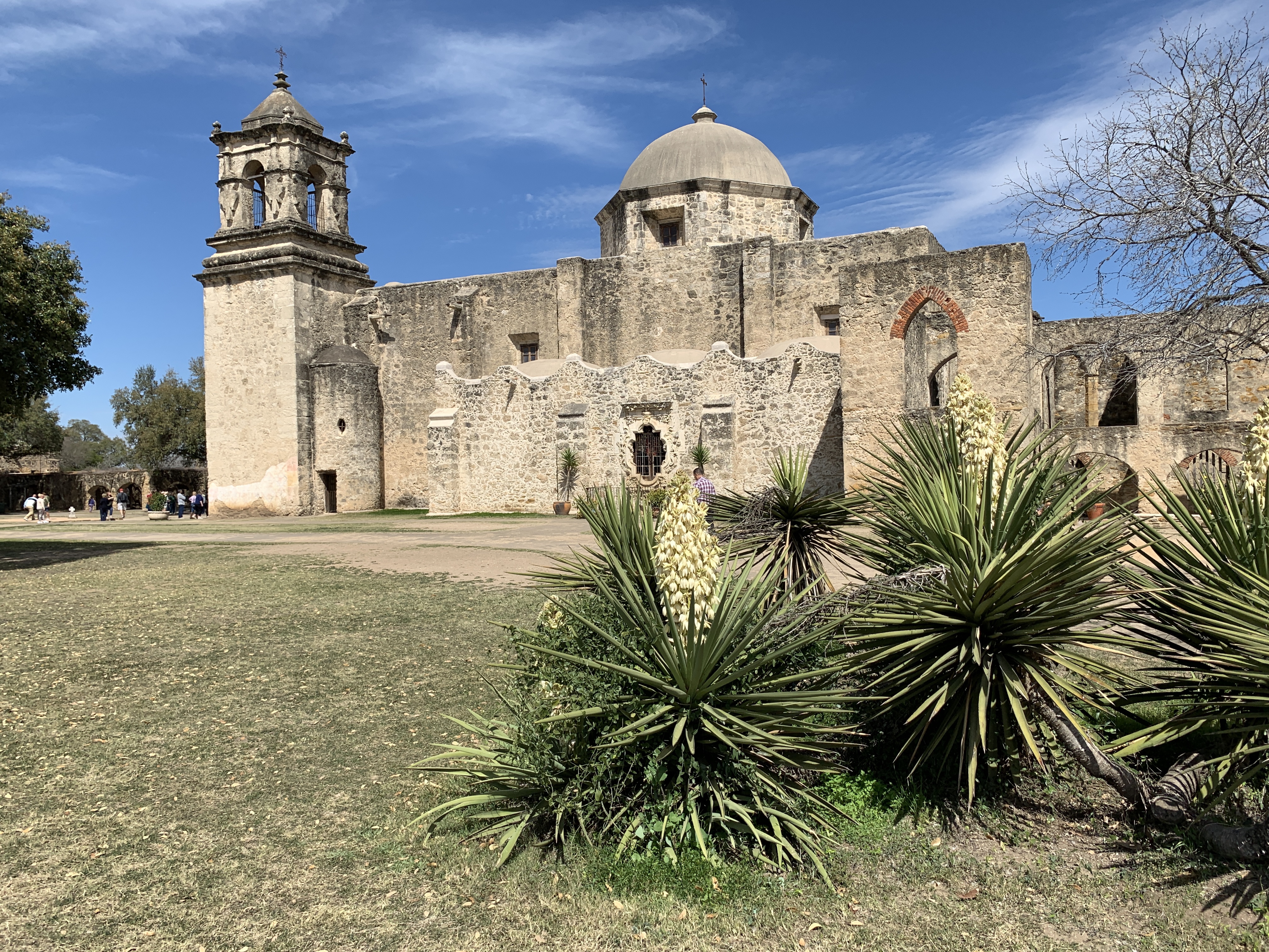 We rijden naar Missions National Historical park. In dit deel van San Antonio liggen 4 oude grensmissieposten uit de 18e eeuw. Twee daarvan hebben we bekeken, Mission Concepcion en Mission San Jose.
