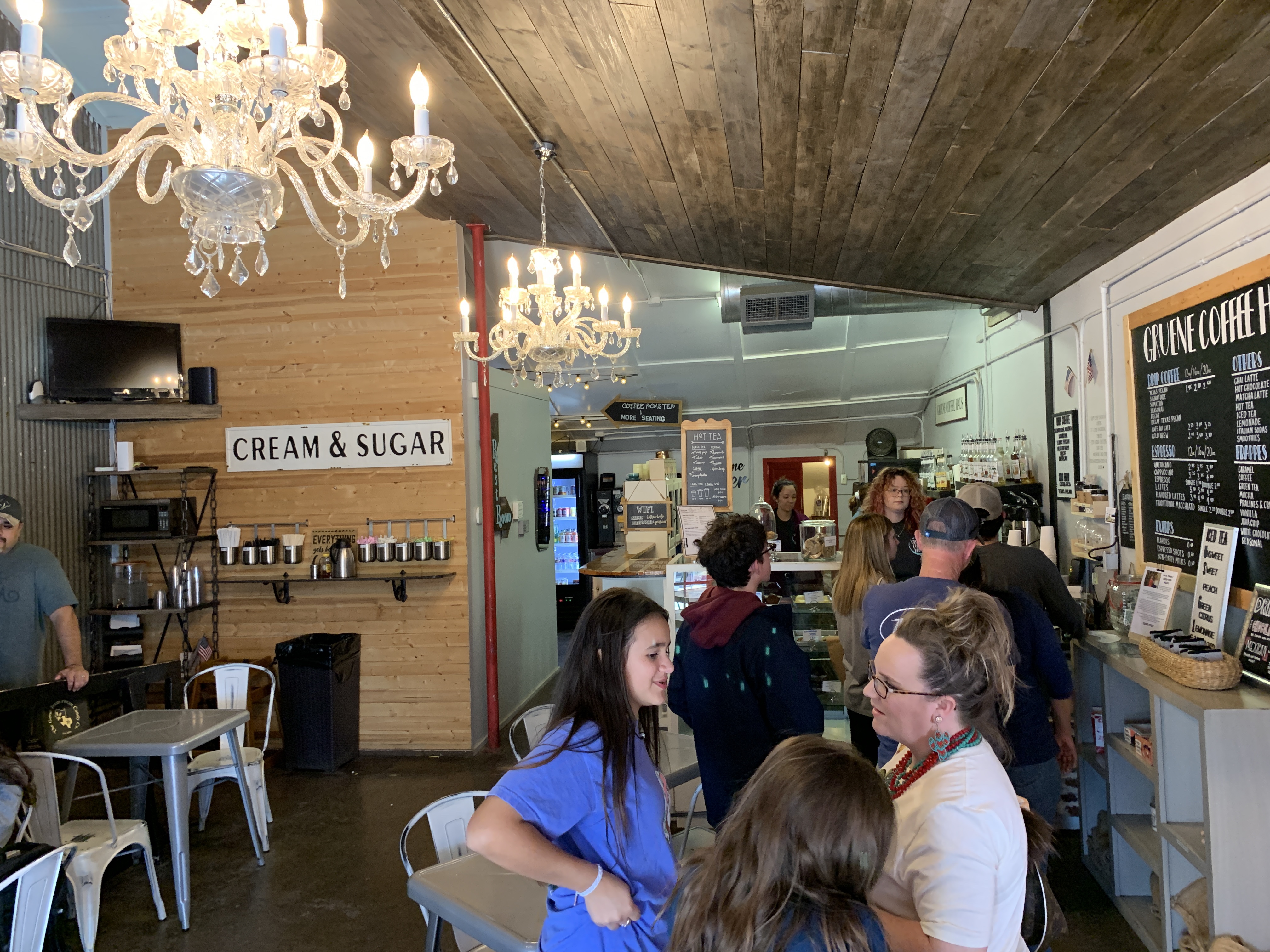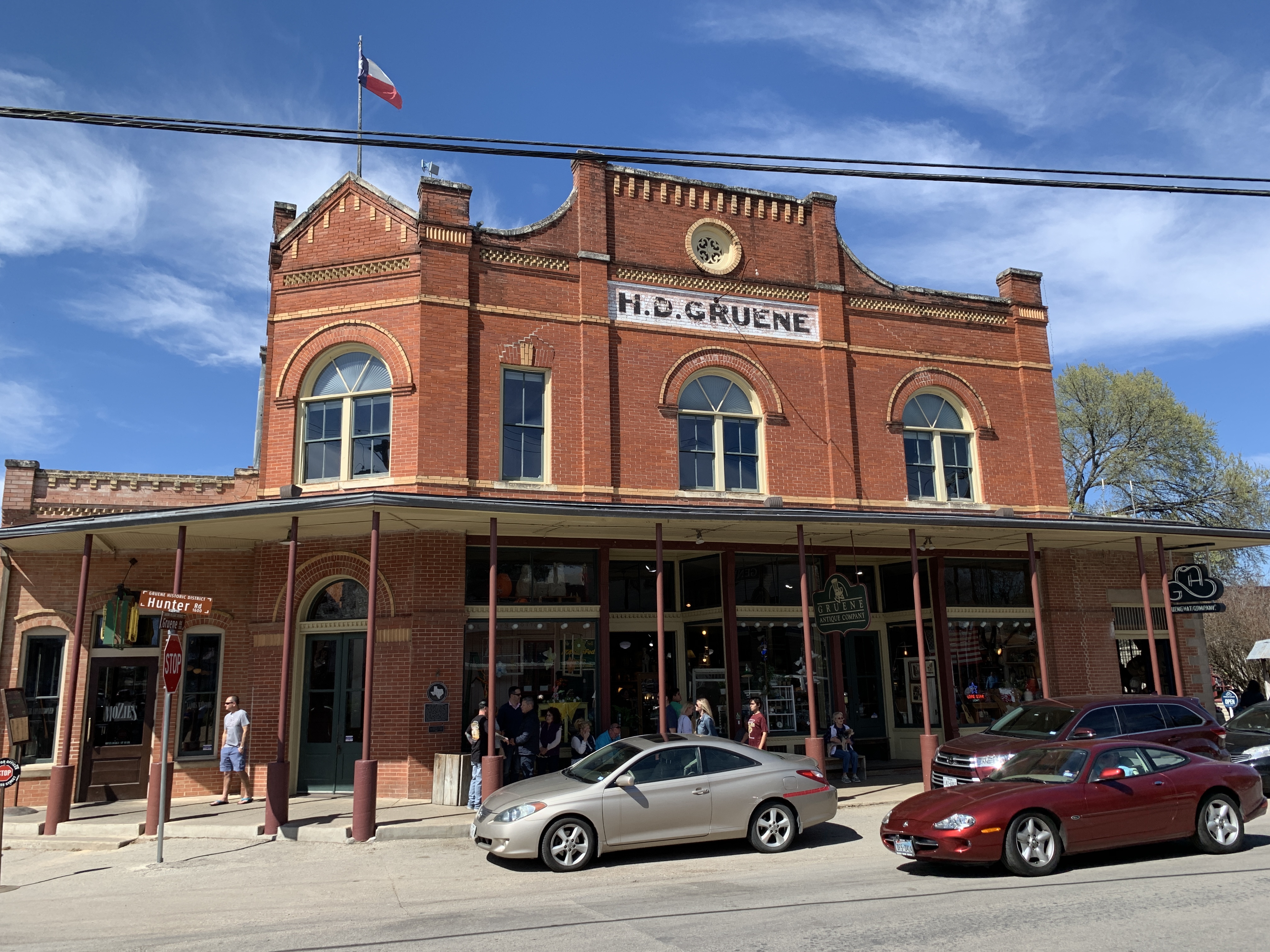 Nu heel toeristisch, maar vroeger opgericht door de Duitse immigrant Ernst Gruene. Samen met zijn vrouw verbouwden ze hier katoen. Ze bouwden het dorp verder uit met o.a een saloon en danshal, Gruene hall. De Gruene Hall is nu de oudste nog draaiende danszaal van Texas. Veel bekende artiesten zoals Willie Nelson en Garth Brooks hebben er opgetreden. Als wij er zijn speelt er ook een livebandje.