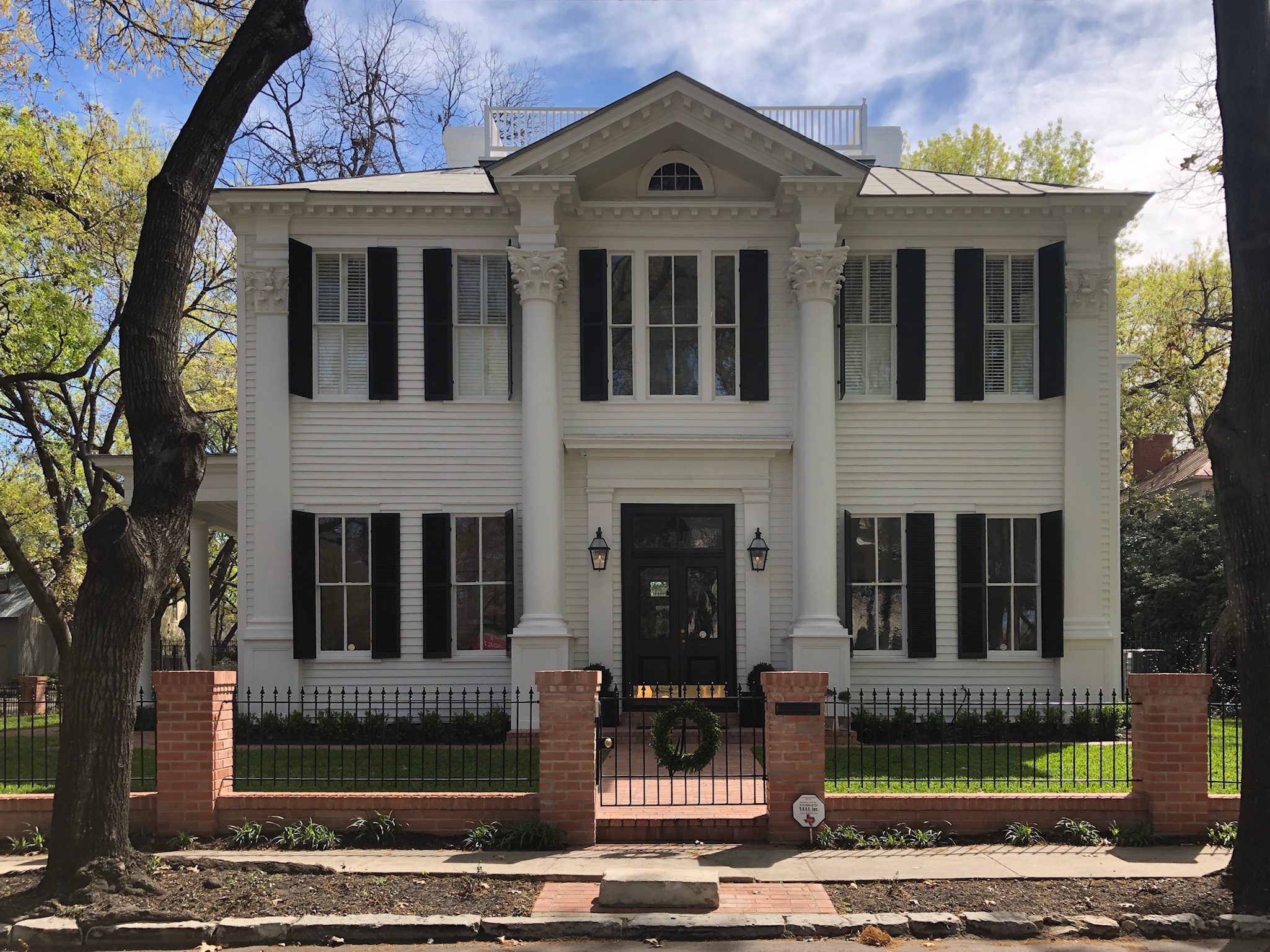 We zetten de auto aan de kant van de weg in Washington Street en lopen langs de prachtige oude historische huizen.