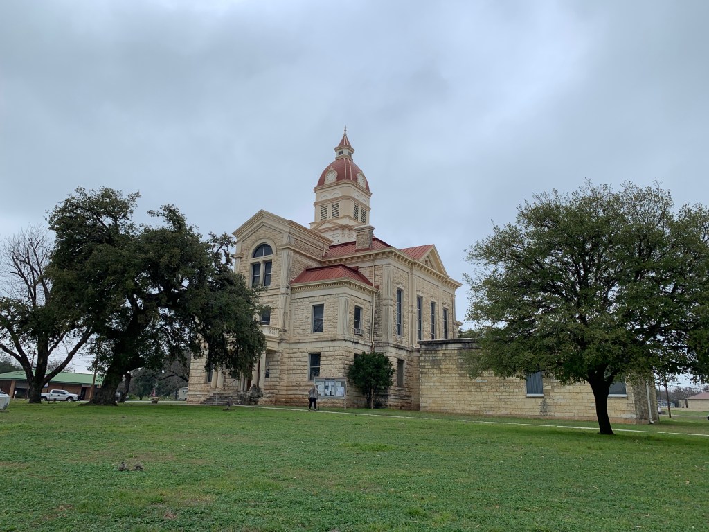 Het is rustig in het stadje. We kopen bij een bakkerij koffie met wat lekkers erbij. Aan de overkant staat een mooi courthouse.
