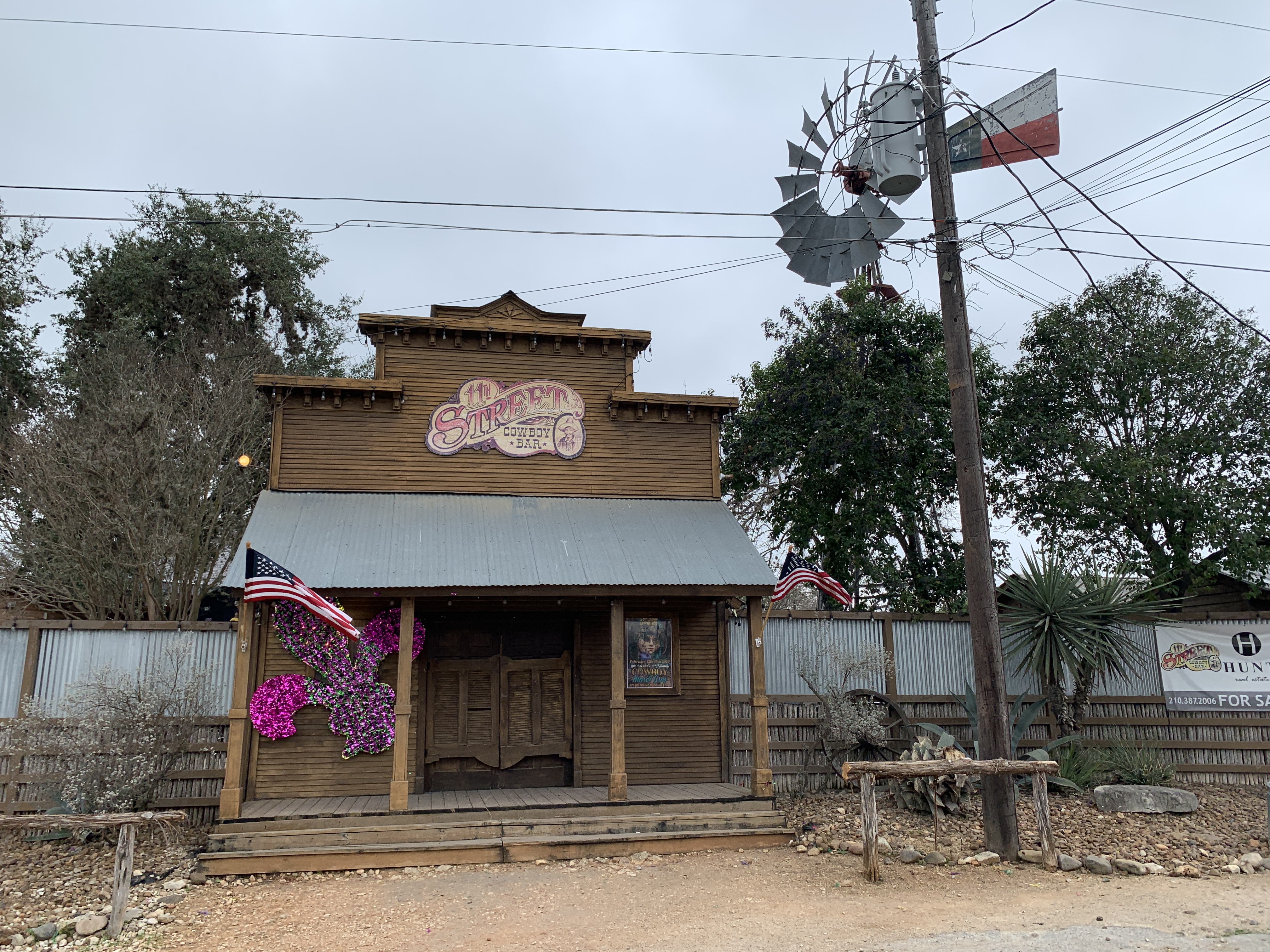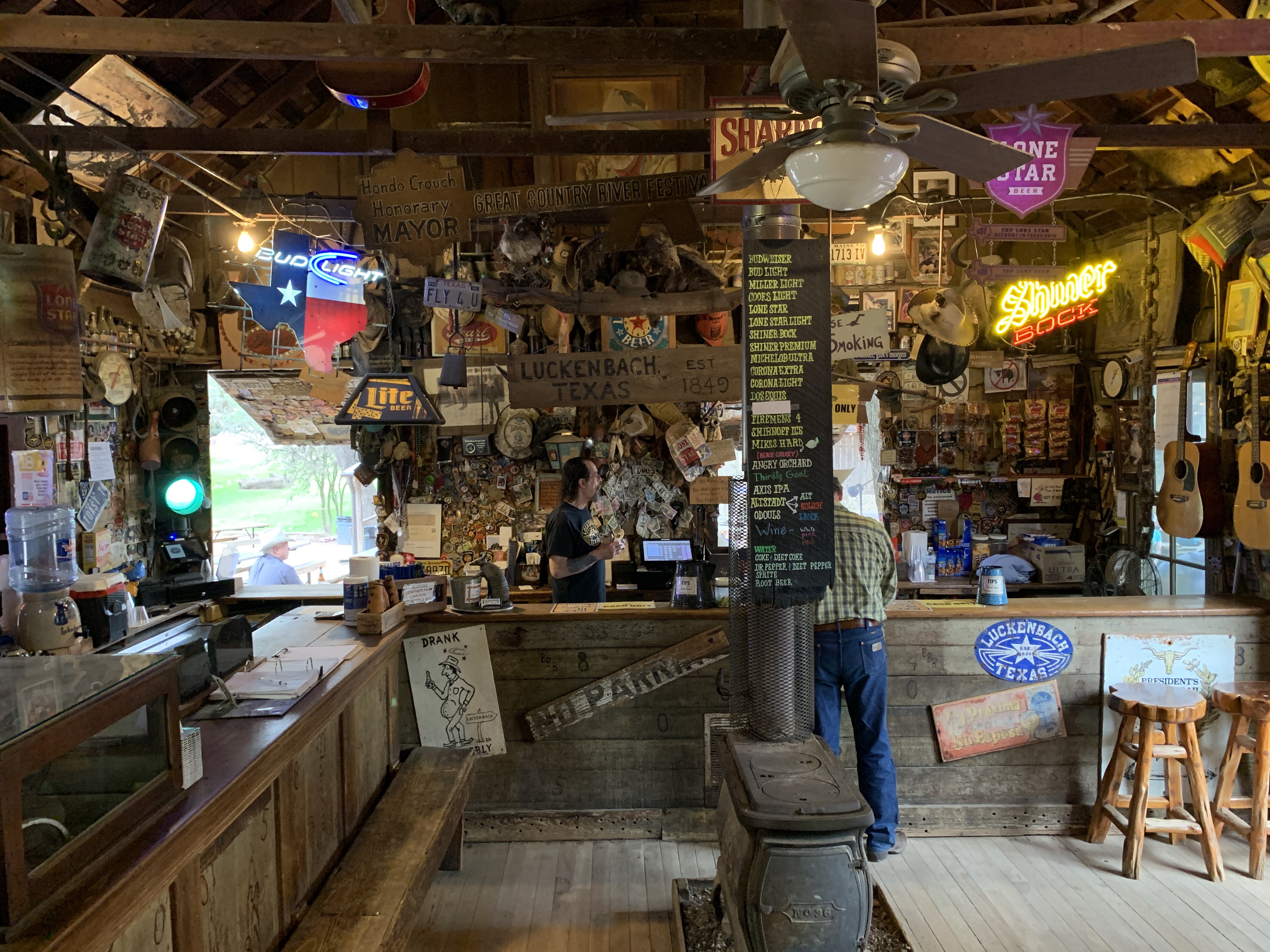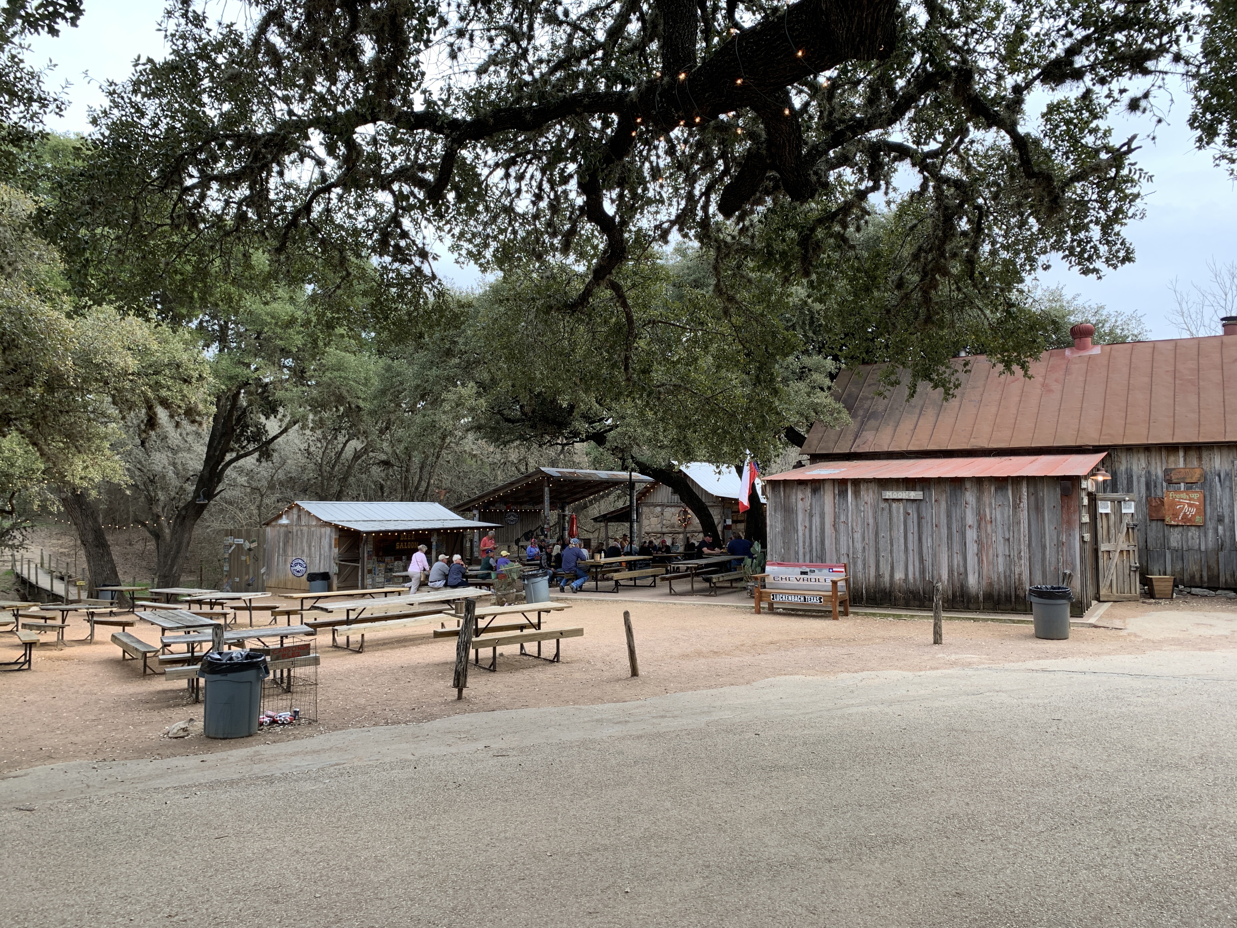 Nu is het een plek waar veel Country muziek gespeeld word. Als we aankomen zien we veel motoren en op het terras horen we de muziek al. Drie al op leeftijd zijnde muzikanten spelen oude Country nummers. Mensen drinken een biertje en zitten op de houten banken die er staan. Het is er heel gezellig. Zeker een tip bij een bezoek aan Texas dit plaatsje even bezoeken. Het is heel fotogeniek.