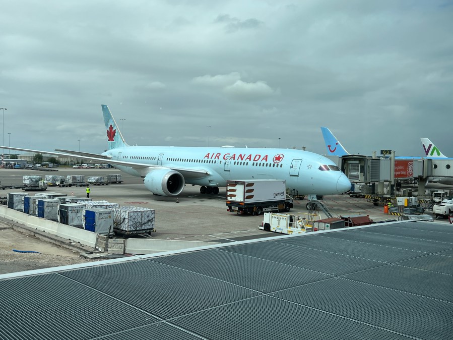 In de tussentijd kregen we een SMS bericht van Air Canada dat de vlucht nu pas om 14.10 uur vertrekt.