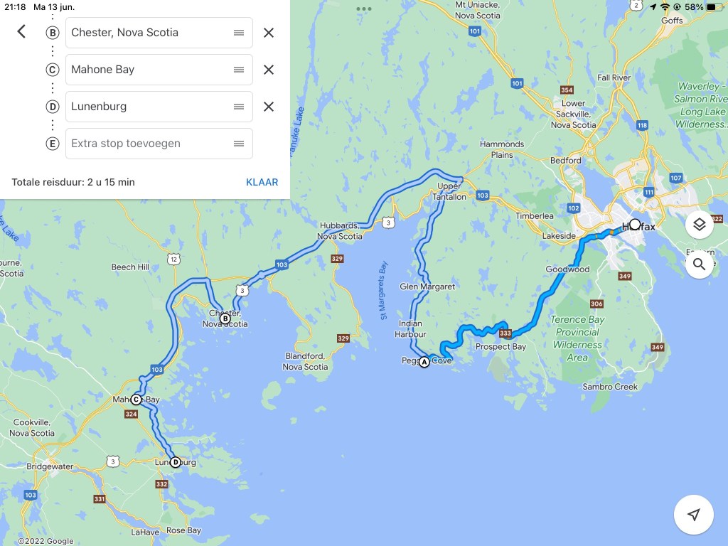 Morgen verlaten we Lunenburg en gaan naar Truro waar we in de avond onze zoon Marc weer gaan ontmoeten.