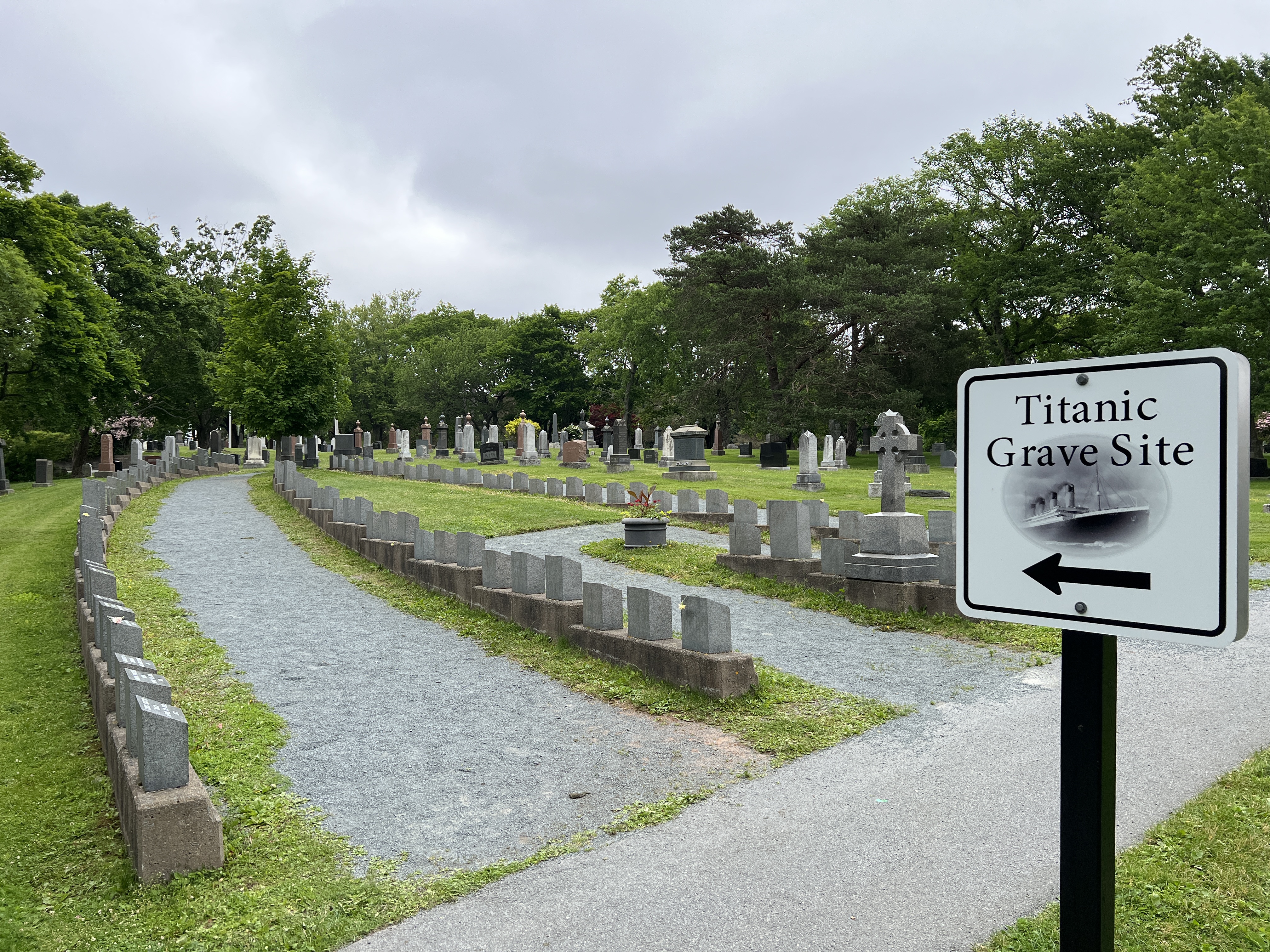 Op 14 april zonk het ‘onzinkbare schip’ de Titanic. Het raakte een ijsschots nabij New Foundland. Vanaf de haven uit Halifax vertrokken 2 reddingsschepen naar de ramplocatie. Veel slachtoffers zijn begraven op deze begraafplaats. Onder de namen bevond zich ook J. Dawson. Leonardo de Caprio speelde Jack Dawson in de film Titanic, alhoewel deze naam niets had te maken met de J. Dawson op het kerkhof komen veel toeristen af op deze grafsteen.