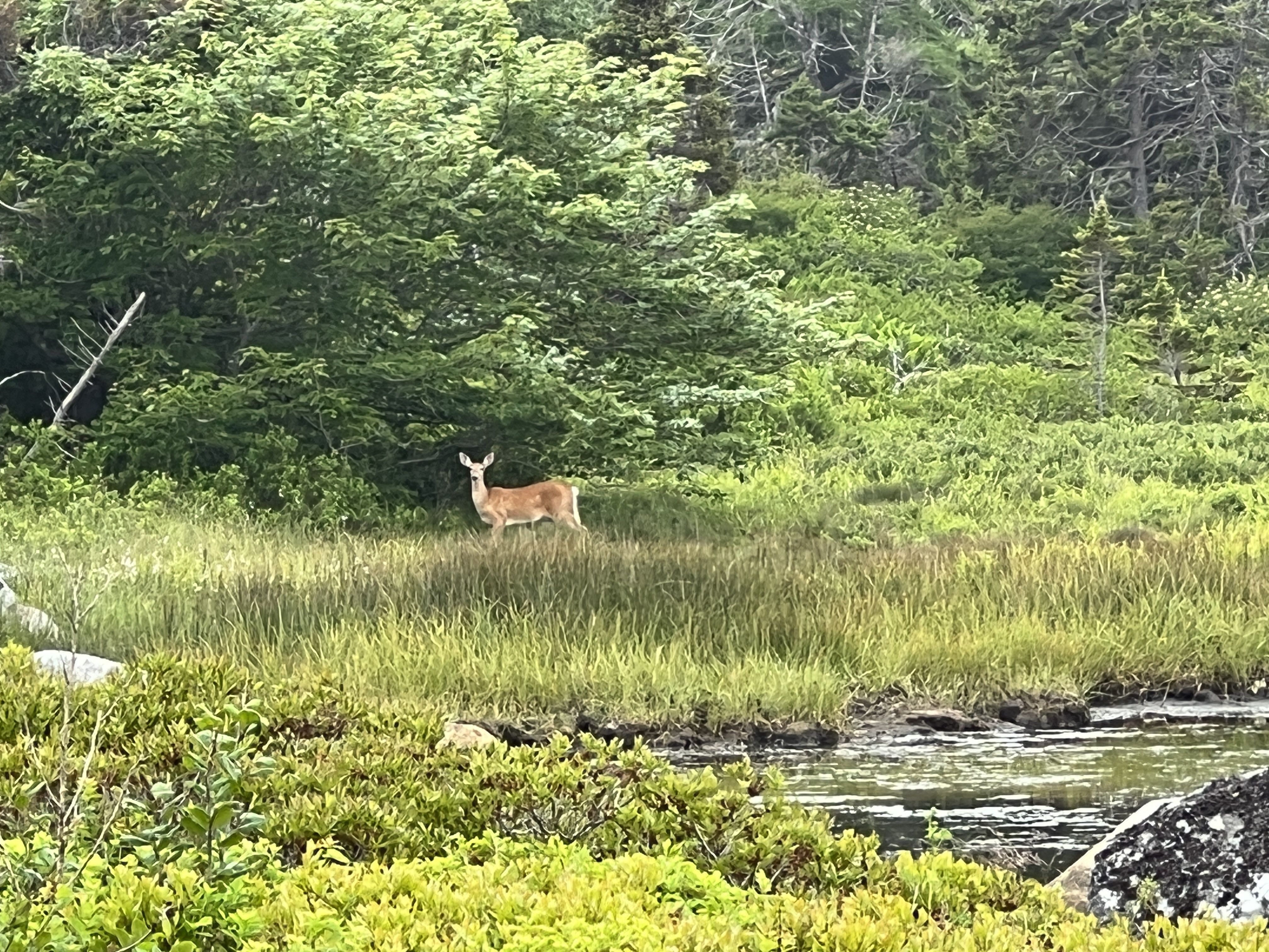 We verlaten Halifax en rijden via een mooie route richting Peggy’s Cove. Hoe dichterbij we komen hoe meer mist van zee het land instroomt. Het geeft wel een mystieke sfeer. Vlak voor Peggy’s Cove spot Ingrid een hert. We keren om en rijden iets terug om het hert beter te kunnen bewonderen.