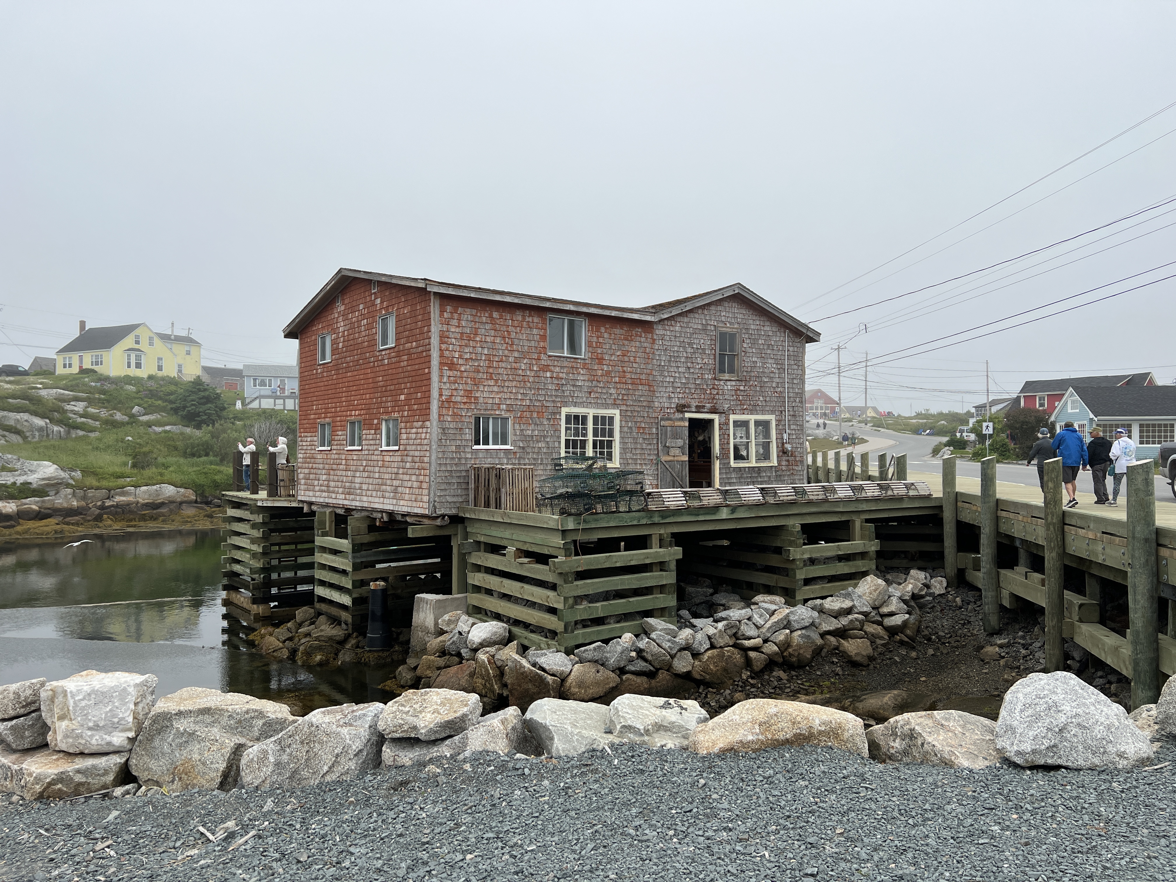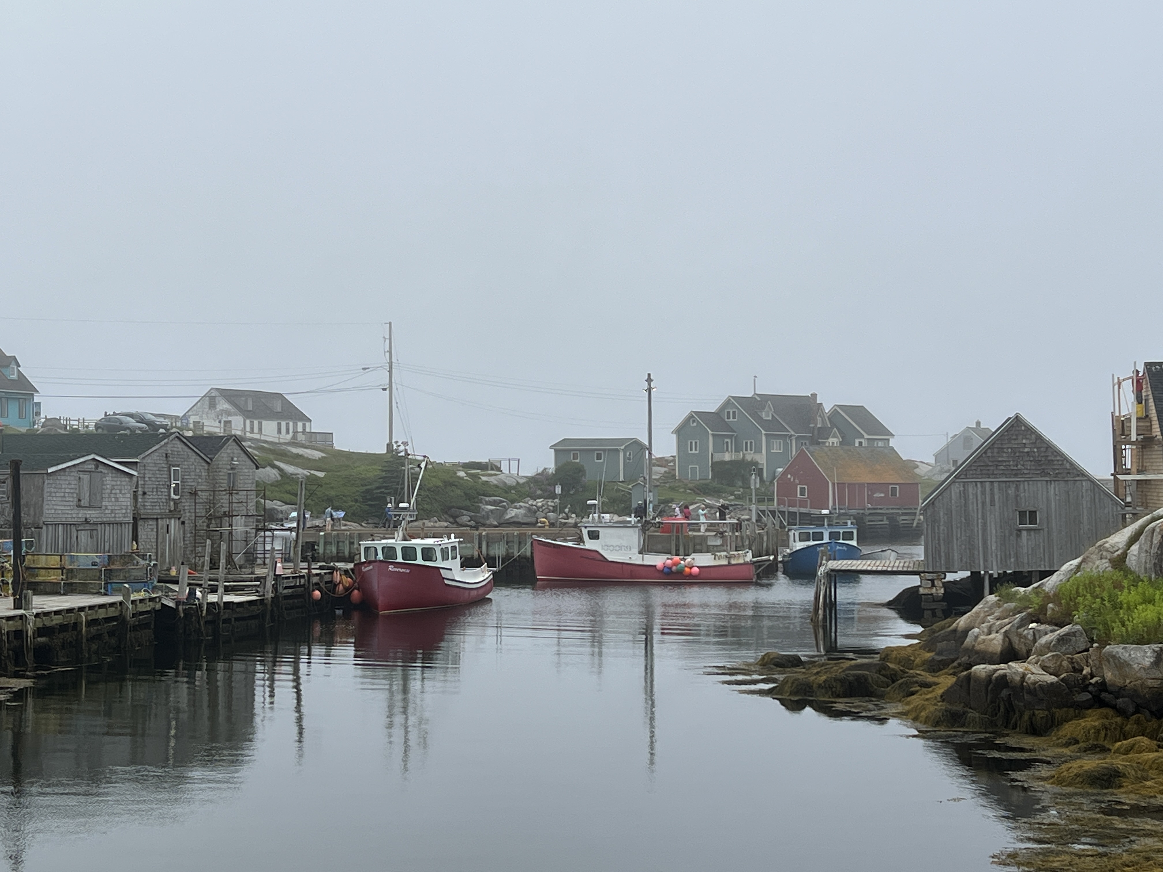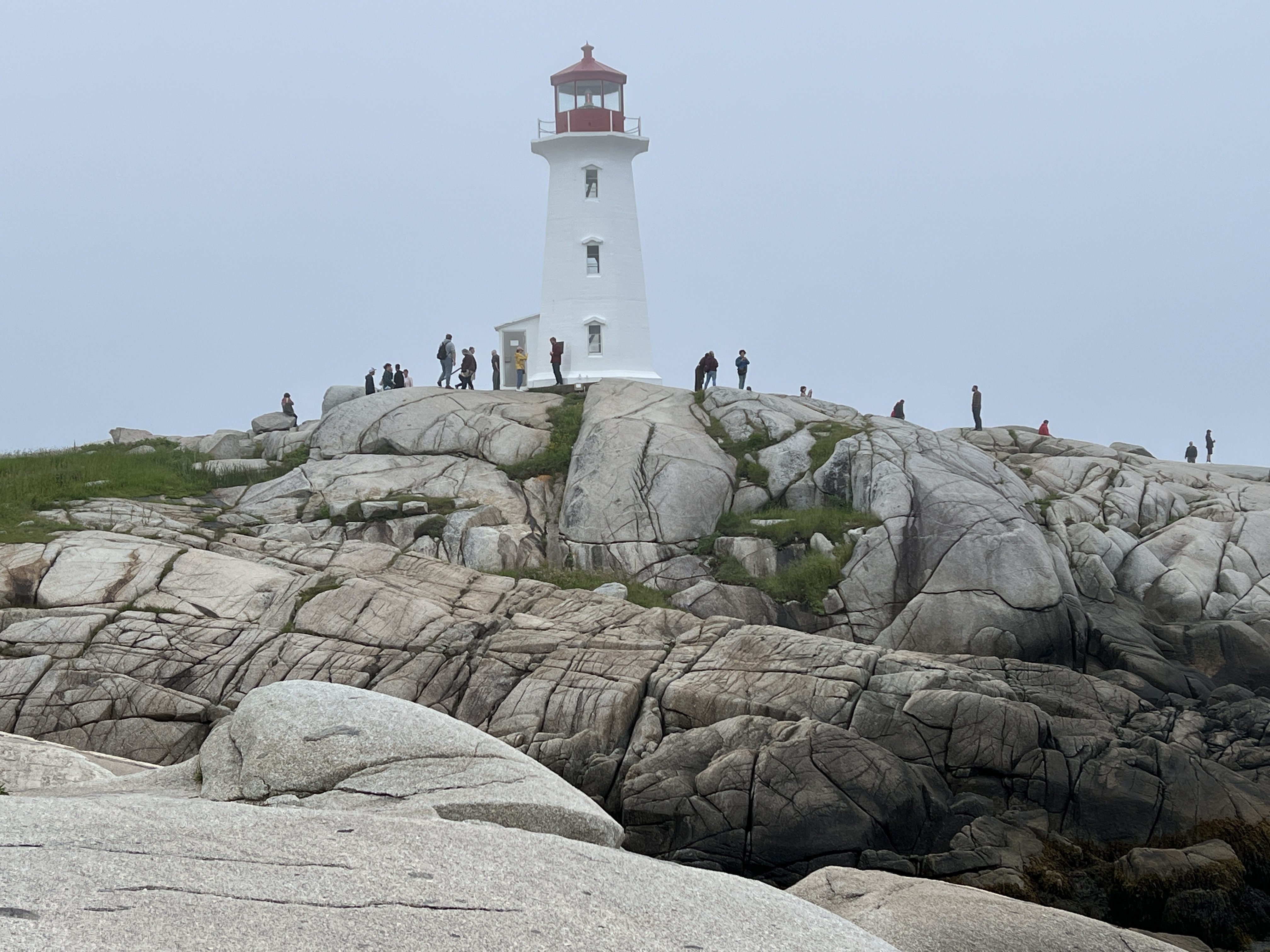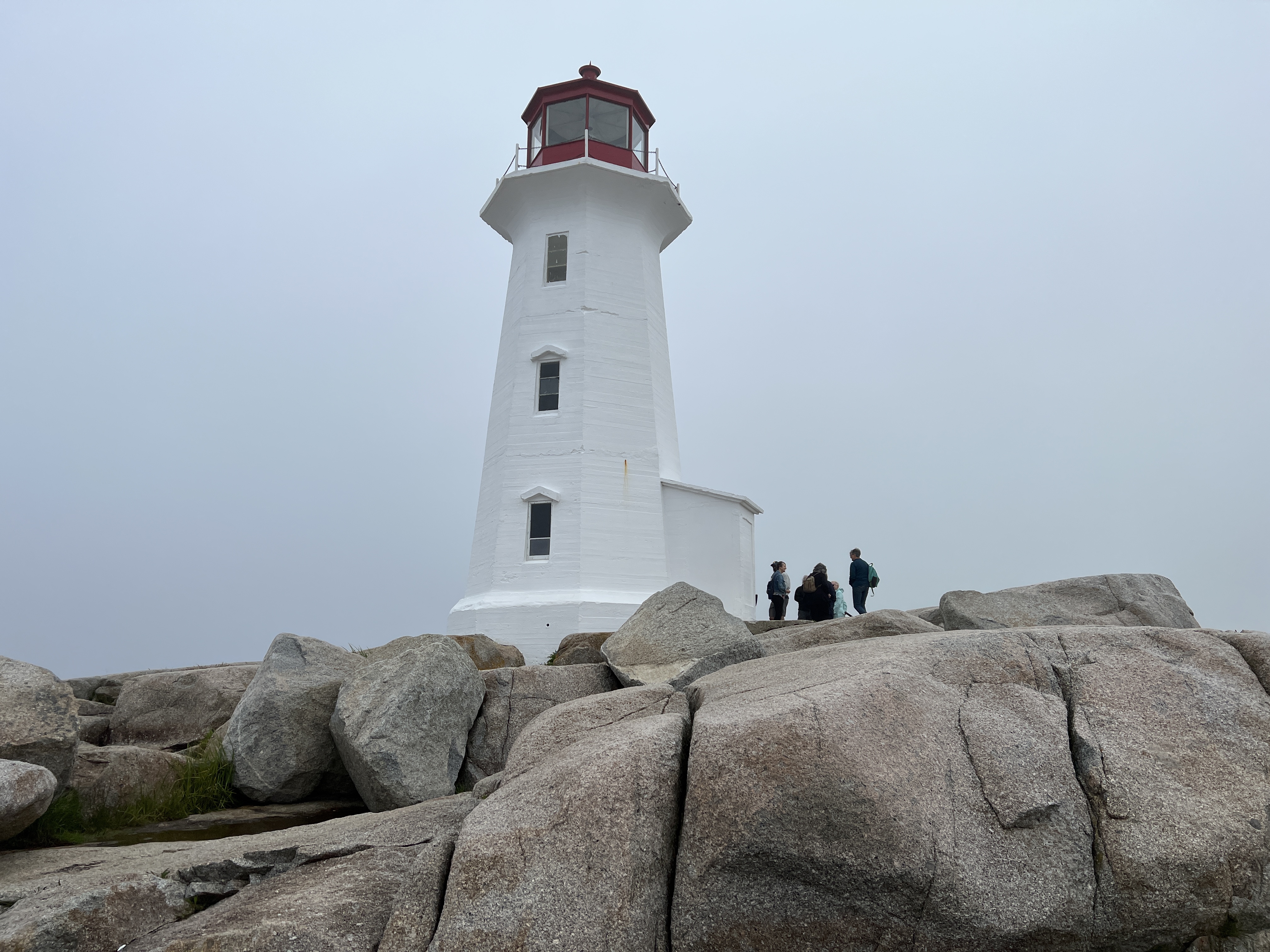 Peggy’s cove is 1 van de populairste vissersdorpjes van Canada. De Peggy’s Cove lighthouse, gebouwd op grote, gladde granietrotsen is 15 meter hoog. De vuurtoren behoort tot de meest gefotografeerde plekken van Atlantisch Canada. Dat bleek ook wel want er waren heel veel mensen die zichzelf met de vuurtoren op de achtergrond wilden vereeuwigen. Uiteraard doen wij net zo hard mee. De mist maakte het totaal plaatje nog mystieker.