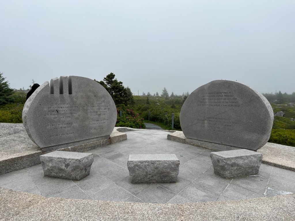 We verlaten Peggy’s Cove en gaan richting Lunenburg. Al na ca. een km is links van de weg een monument van de op 2 september 1998 neergestorte vlucht 111 van Swissair. 229 mensen kwamen bij deze ramp om het leven. Ter nagedachtenis van deze ramp staat hier een monument.