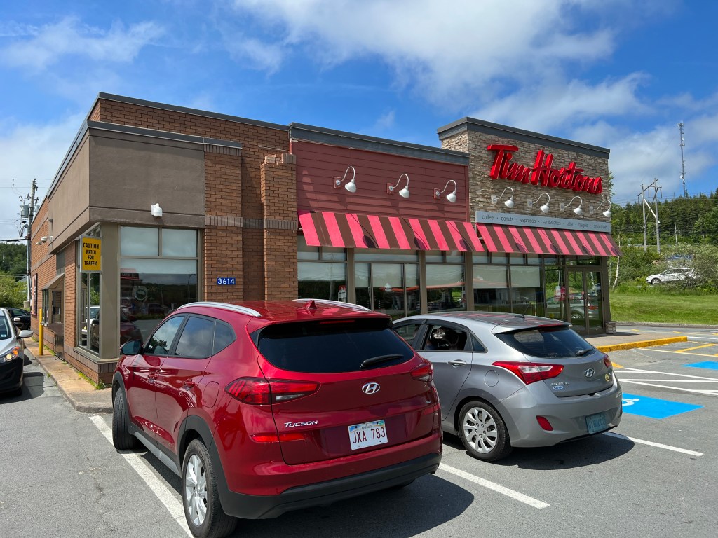 Bij Upper Tantallon eten en drinken we nog wat bij een Tim Horton’s, een bekende keten van café restaurants in Canada.