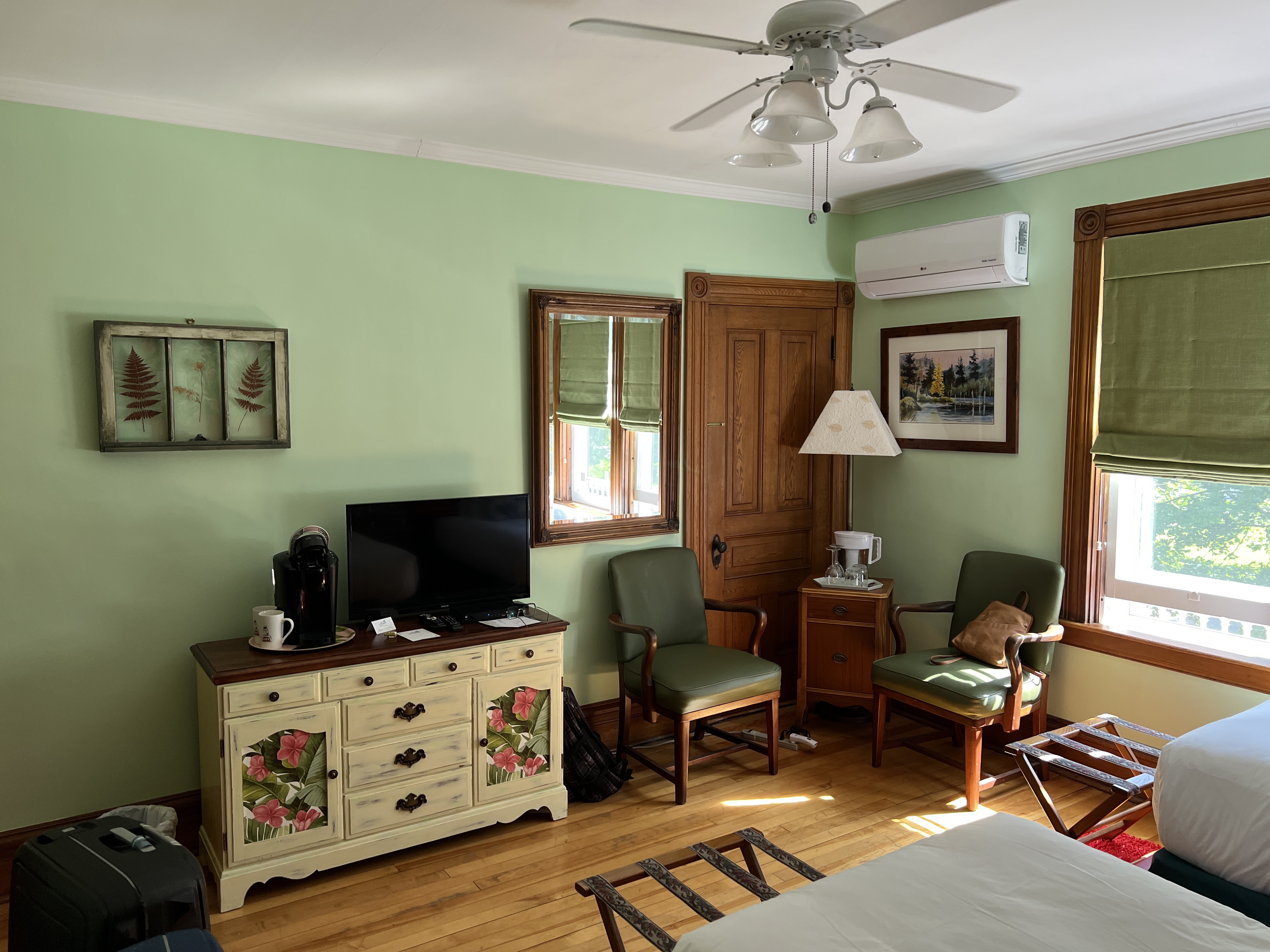 Inmiddels is het zonnig geworden en is het 24 graden. Om 16.00 komen we in Lunenburg aan. Voordat we het stadje gaan bekijken rijden we eerst naar ons volgende overnachtingsplek, Bed&Breakfast Alicion aan de McDonald Street. We worden verwelkomt door de gastheer en krijgen een prachtige kamer toegewezen.