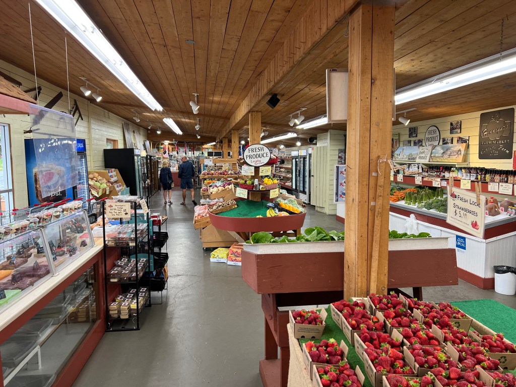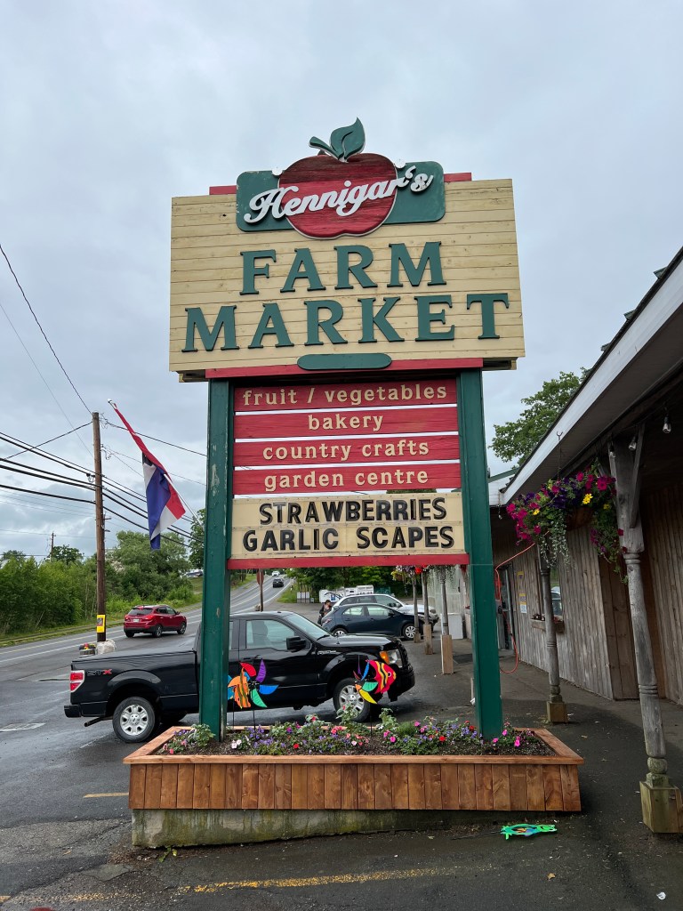 We rijden langs Lunenburg terug en volgen de Highway 12 die langs New Ross komt. Hier zou een leuke Farmers Market zijn, maar helaas was deze dicht. Via de Highway 1 rijden we naar de Universiteits stad Wolfville. Net voor Wolfville gaan we langs een Farmers Market die wel open was en kopen wat fruit en fudge.