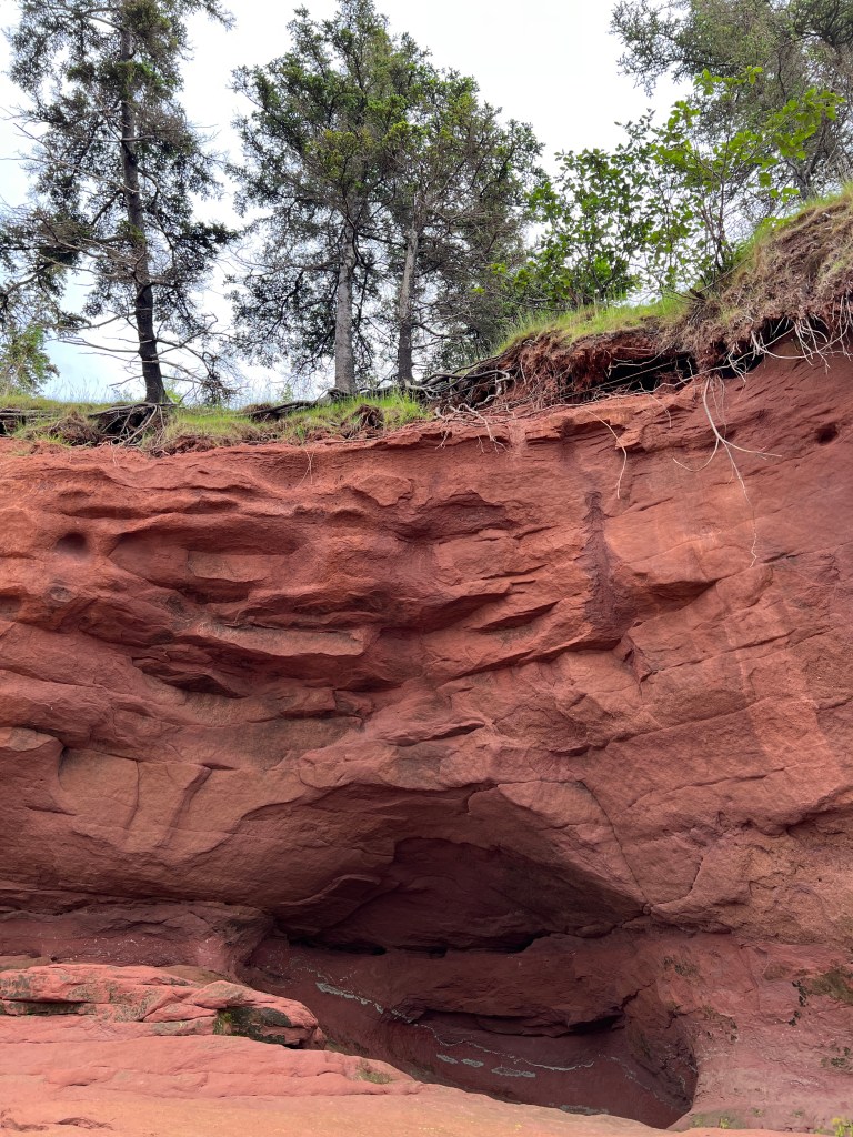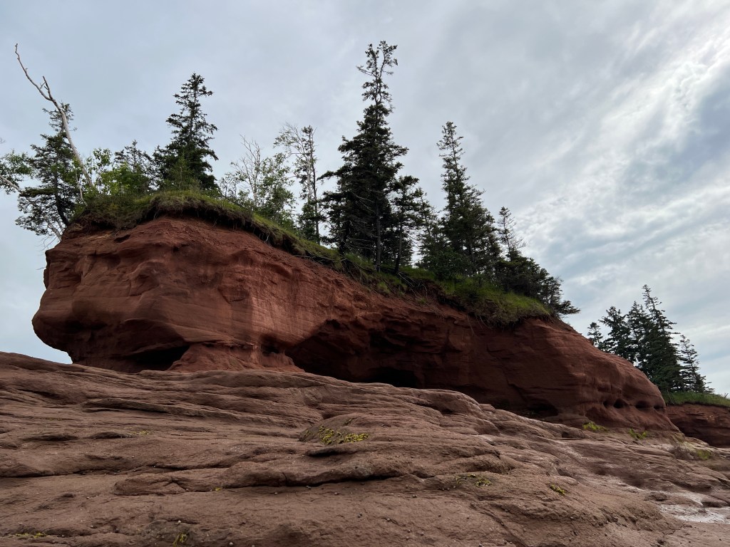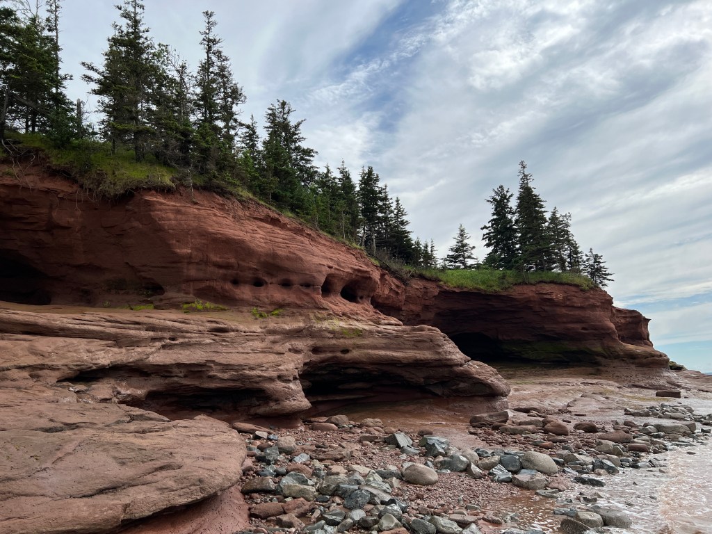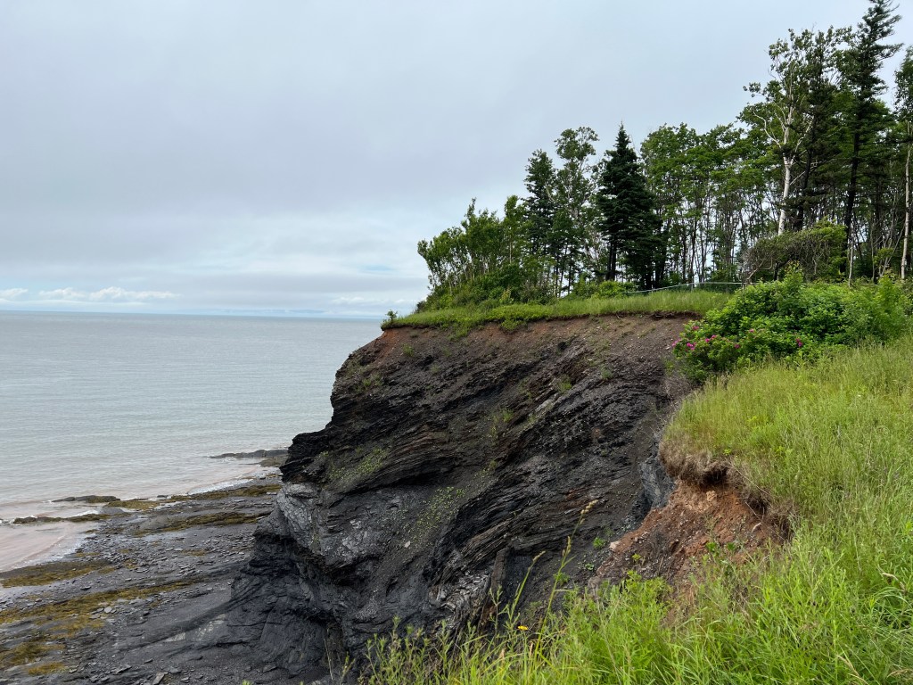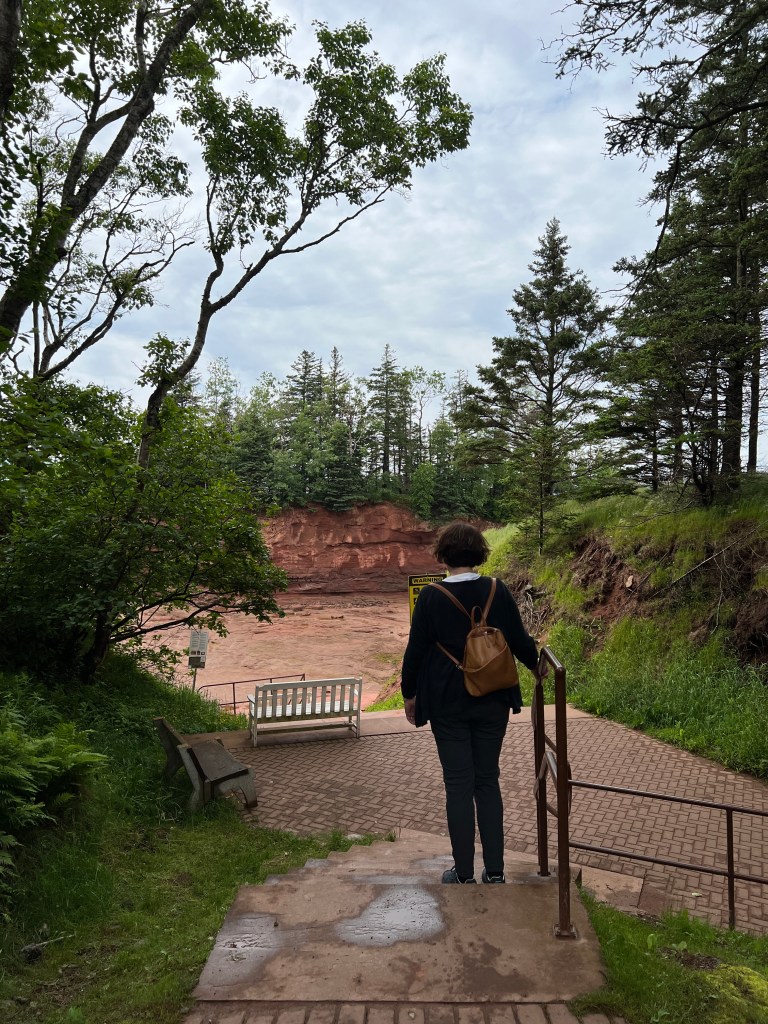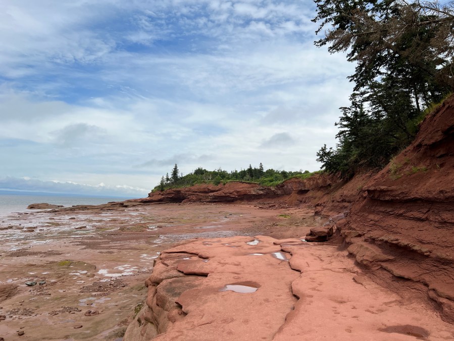 Ons volgende doel is Burntcoat Head Park. Dit park ligt aan het Minas Basin waar het verschil tussen en en vloed wel 15 meter kan zijn. Het grootste getijde verschil ter wereld. Het is 5 minuten lopen als je aan de rand staat. Via 2 trappen komen we op de bodem van het Missen Basin.