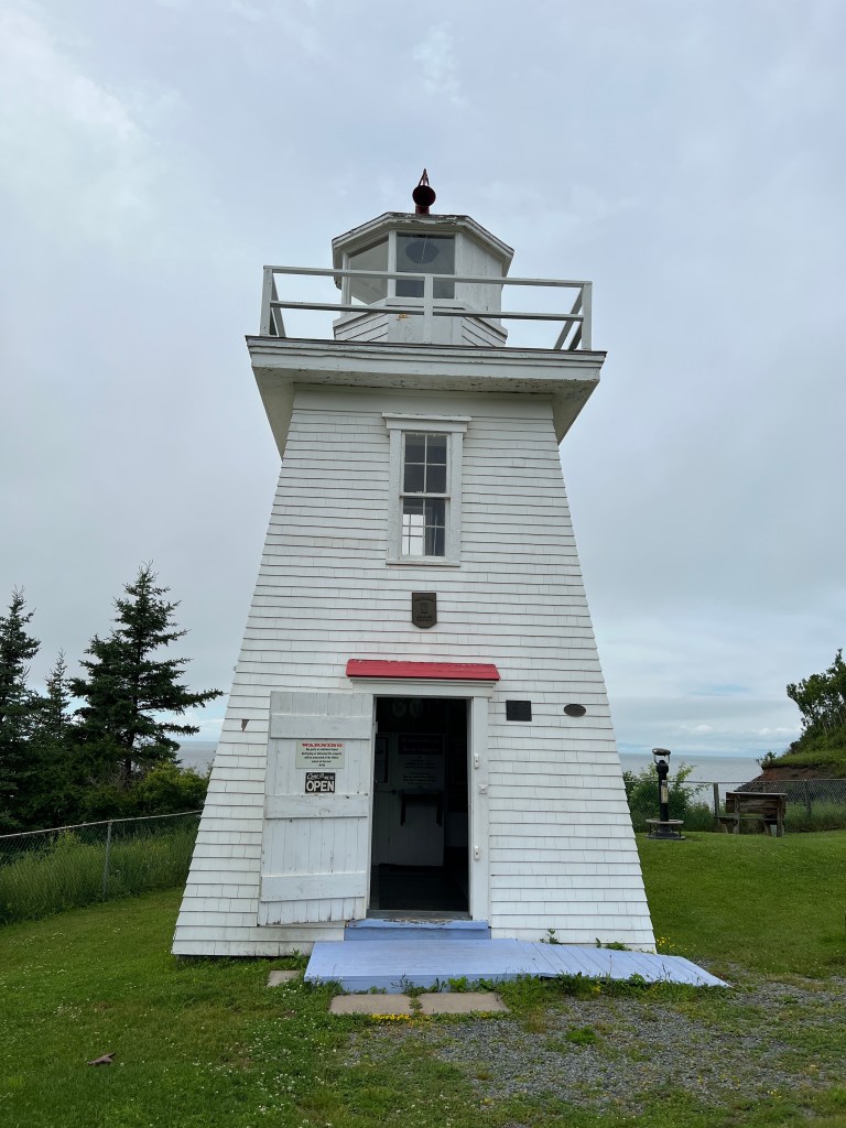 Onderweg via de Highway 1 zien we nog veel wijngaarden. Voorbij Windsor gaan we eerst de Highway 1 nog volgen en daarna gaan we verder over de 215 langs het Minas Basin op weg naar Walton. Hier staat een kleine vuurtoren uitkijkend op Minas Basin. Je kunt naar boven de oude olielamp bekijken.