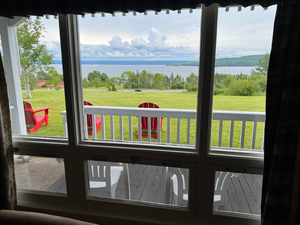 Om 16.00 gaan we inchecken in de Silver Dart Lodge in Baddeck. Het complex ligt prachtig gelegen aan een groot meer. Vanuit de kamer hebben we een prachtig uitzicht op het meer, Bras d’Or.
