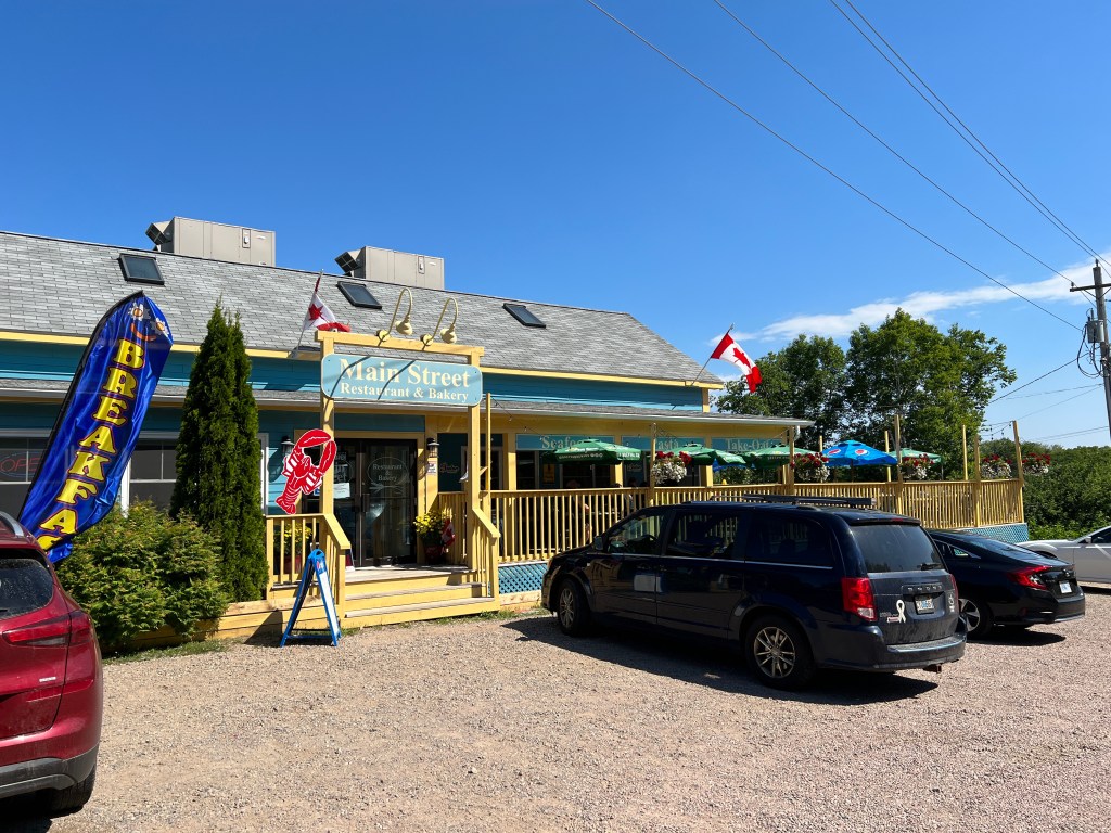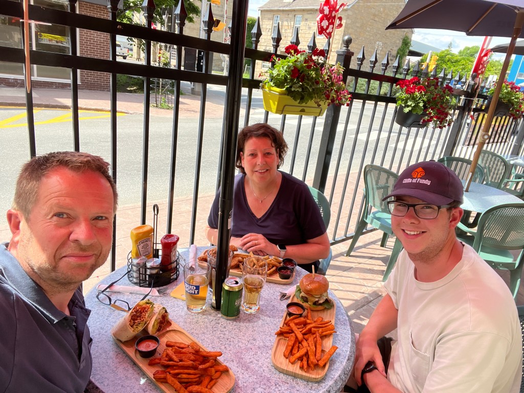 Om 14.30 komen we aan in New Glasgow. Hier eindigt onze 5 dagen samen met onze zoon. Voordat we afscheid gaan nemen rijden we naar het centrum van dit kleine stadje en gaan nog gezamenlijk eten bij een leuke pub, The Spot. We kunnen met dit weer lekker buiten op het terras zitten.