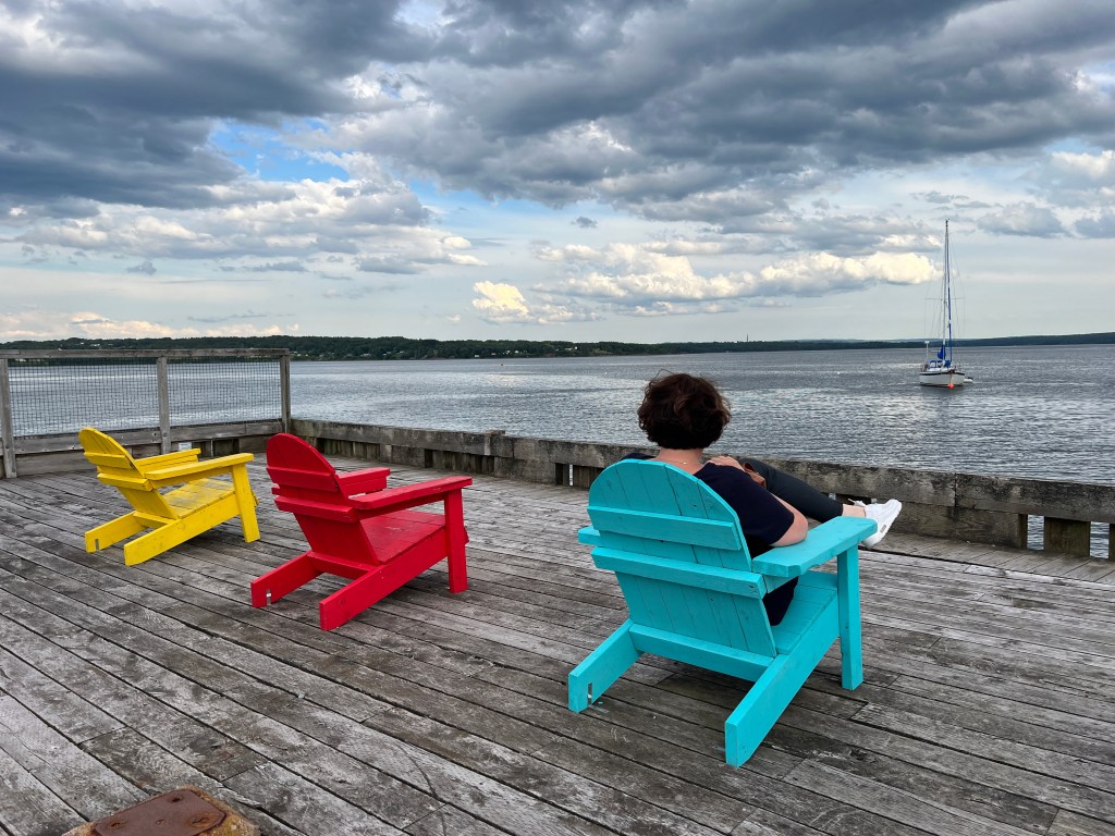 Ook hier in Pictou weer overal gekleurde stoelen.