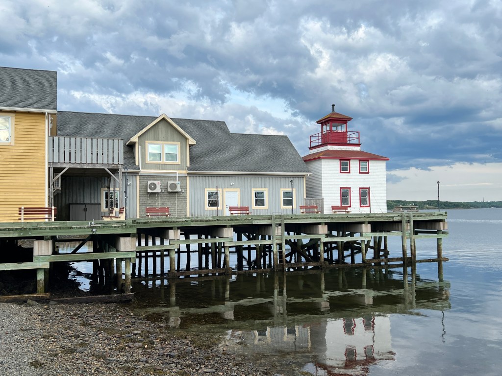 Even verderop lopen we nog even naar de boardwalk met de vuurtoren van Pictou.