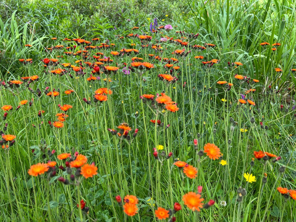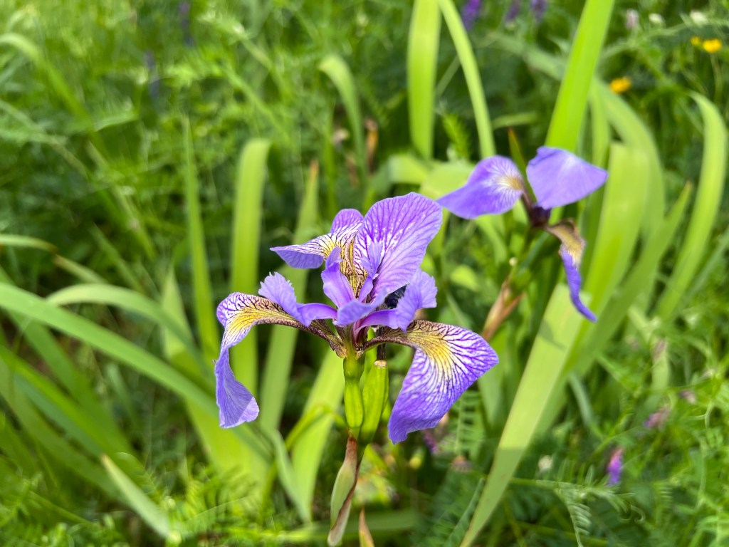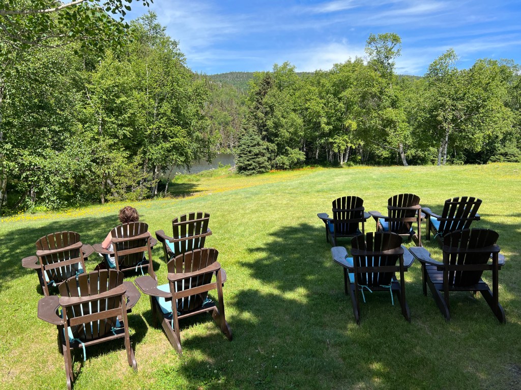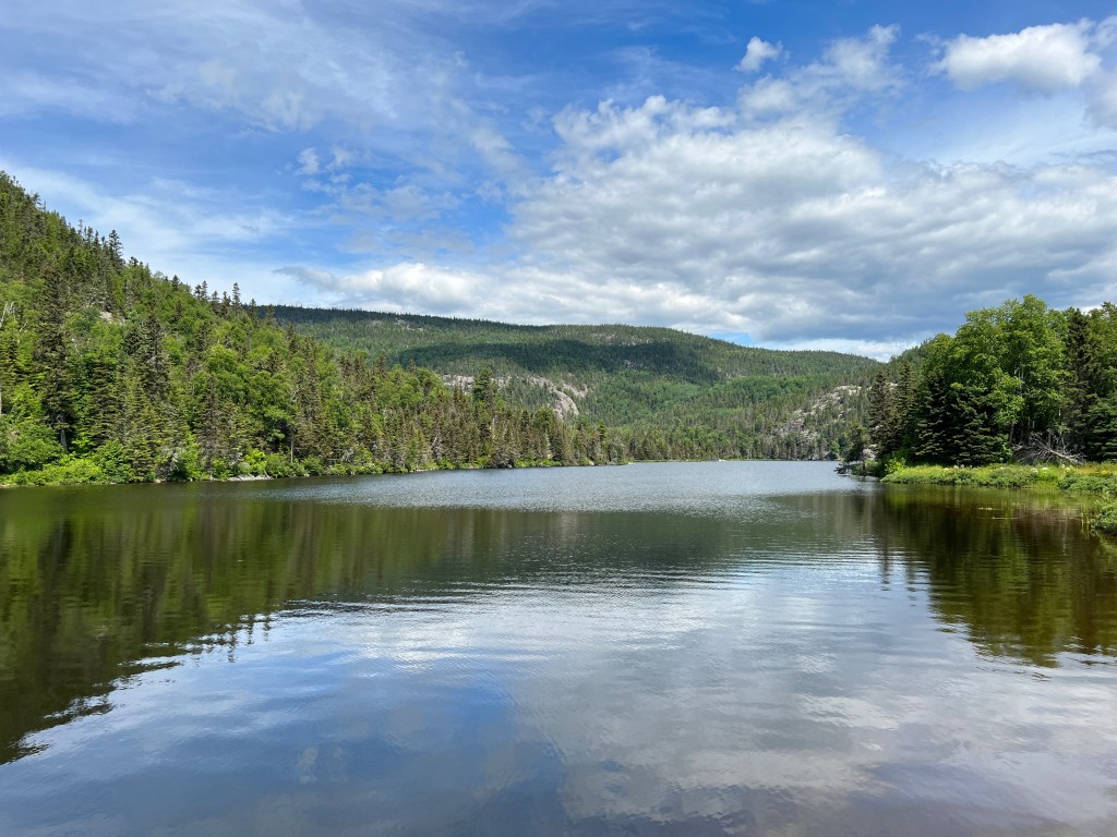 Na het ontbijt bellen we met het thuisfront en relaxen later nog even bij het meertje wat achter de B&B ligt. Er bloeien prachtige bloemen. Het meertje heet, Lac de l’Anse a l’Eau.