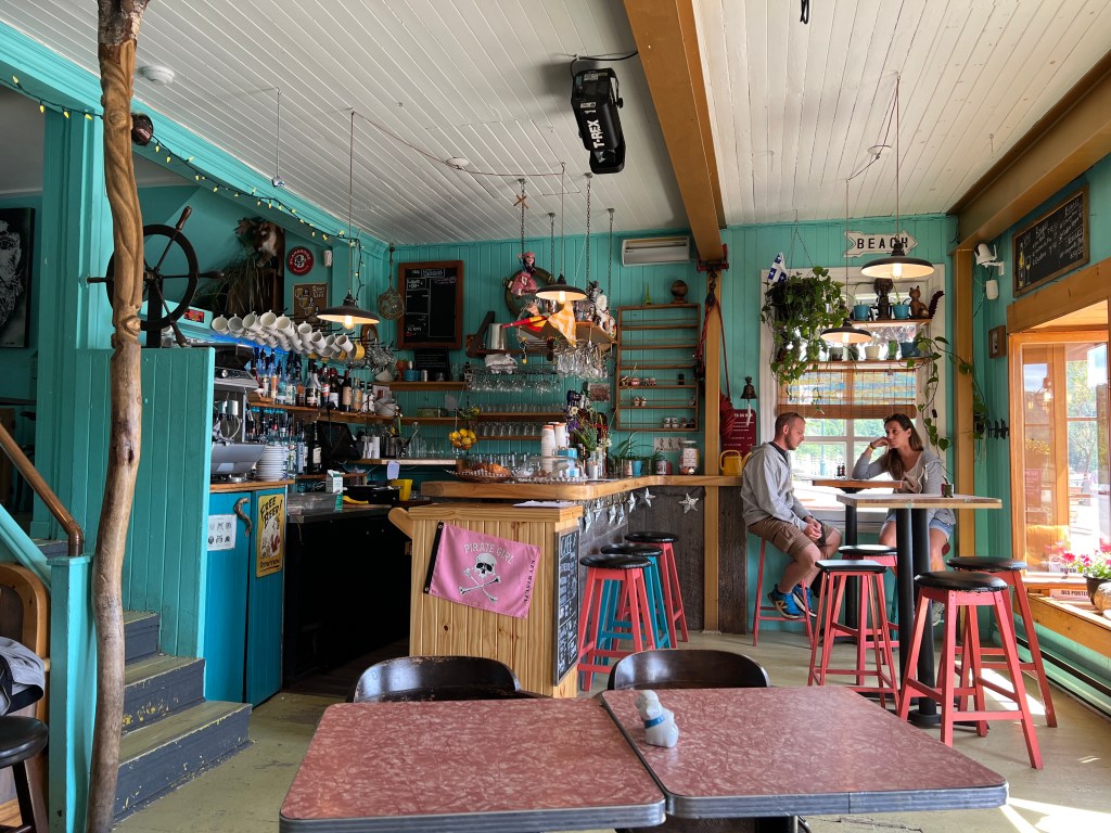 Rond half 12 parkeren we de auto in de haven. Vanaf hier vertrekt de AML walvisexcursie boot om 13.00 uur. Tot die tijd moeten we ons nog even vermaken. Ten eerste doen we dat bij een leuk cafeetje, Le Gibard. Ze schenken daar heerlijke cappuccino.