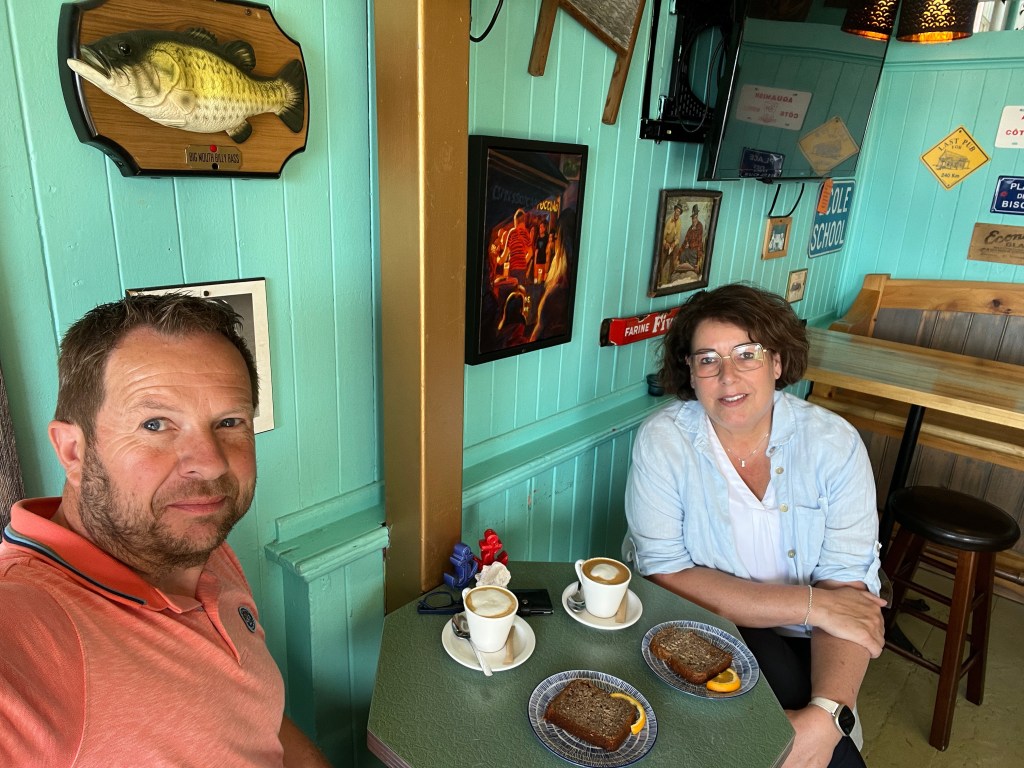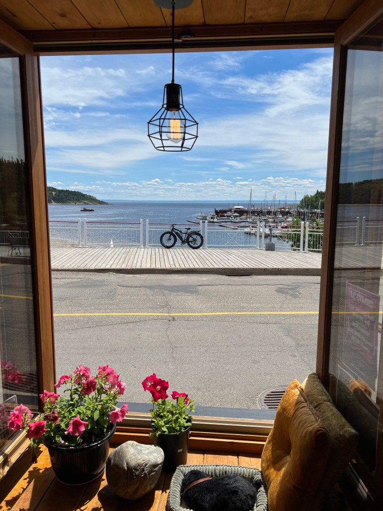 Vandaag een relaxed dagje in Tadoussac. We nemen vanochtend om 9.00 uur het ontbijt in de B&B. We worden al welkom gegeten door onze enthousiaste gastvrouw. We krijgen een gevarieerd ontbijt met ei, toast, granola met yoghurt en wat fruit. Uiteraard mist de koffie ook niet.