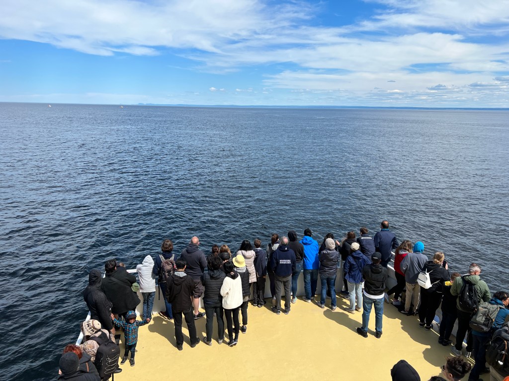 Onderweg zien we ook nog wat dolfijnen. Als laatste van de 3 uur durende vaartocht varen we de Saguenay fjord nog in. Hier steken ook de gratis ferry’s over.