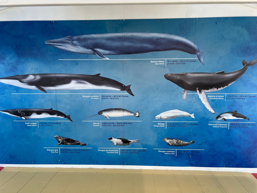 Na de wandeling bezoeken we nog Centre d’Interpretation des Mammiferes Marins. In dit informatiecentrum kom je van alles te weten over de walvissen die hier in deze omgeving vertoeven.
