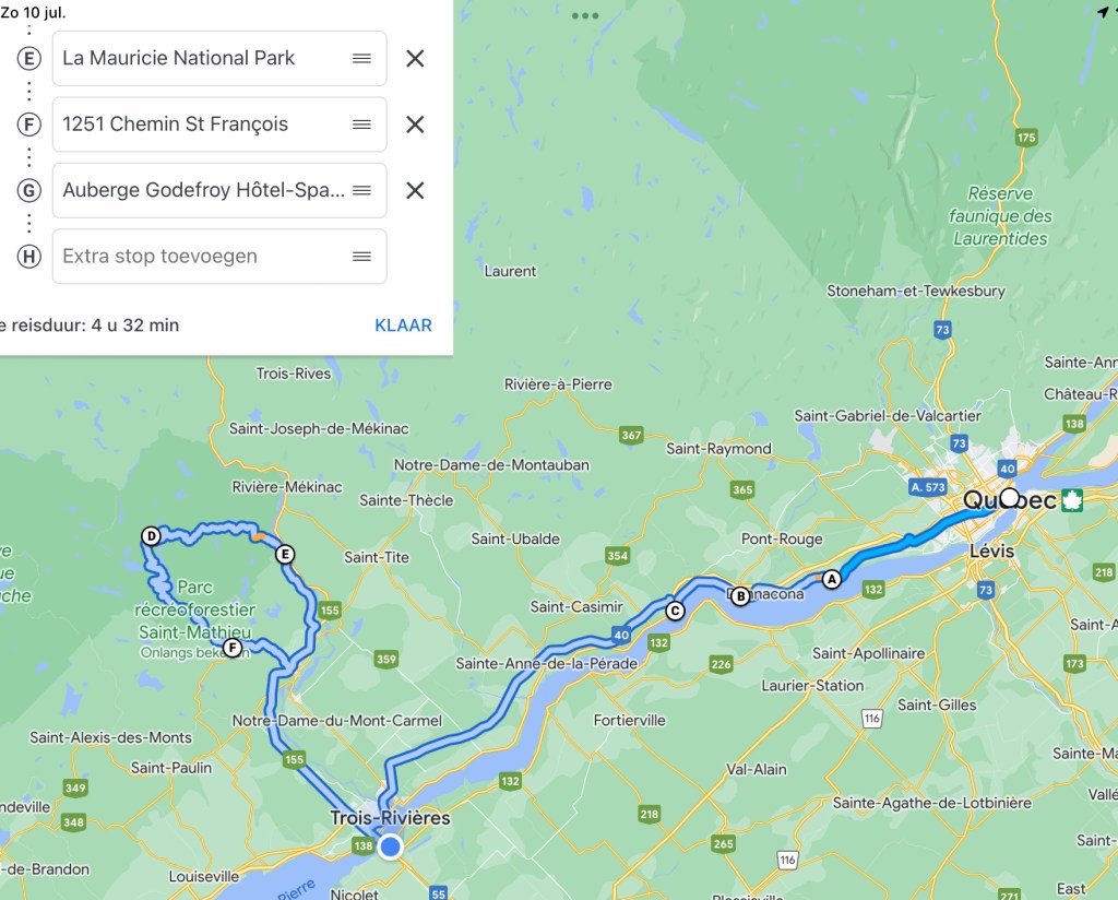 Om 10 uur verlaten we Quebec. We checken eerst uit bij ons mooie hotel, Port Royal. Het hotel is ideaal gelegen. Het oude centrum op loopafstand. We halen daarna onze auto die 100 meter verder geparkeerd staat op. De kosten, totaal 30 dollar, voor 2 dagen valt ons nog mee.