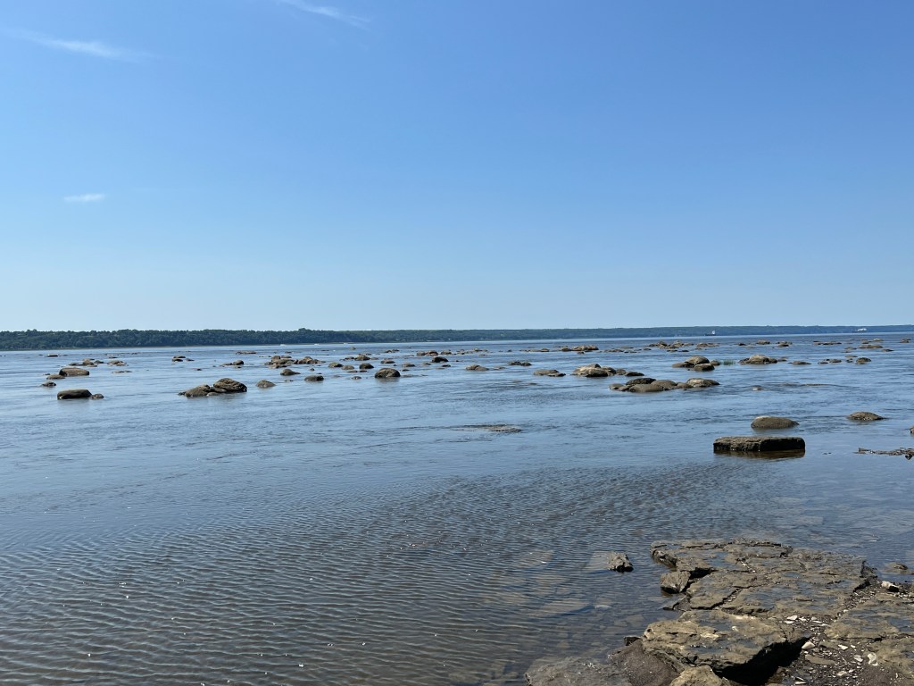 Bij Neuville rijden we vlak langs de St.Lawrence River. De rivier is hier al stukken smaller als bij Tadoussac, In Neuville vinden we een mooi plekje bij het water waar we kunnen ontbijten. Het is al lekker weer.