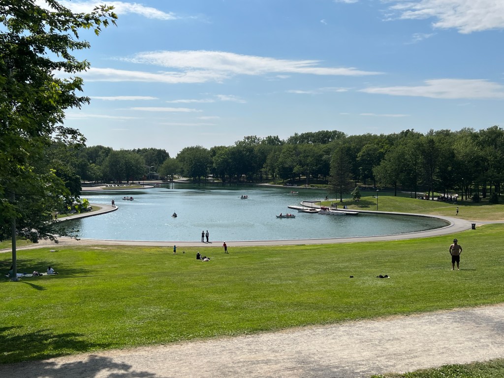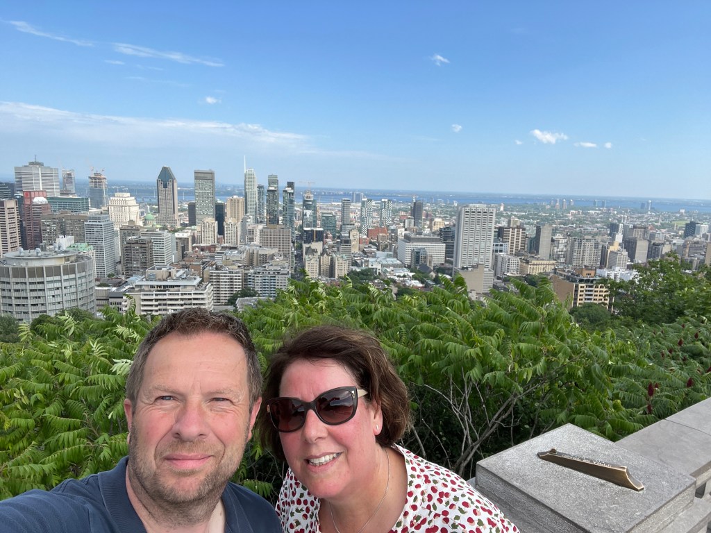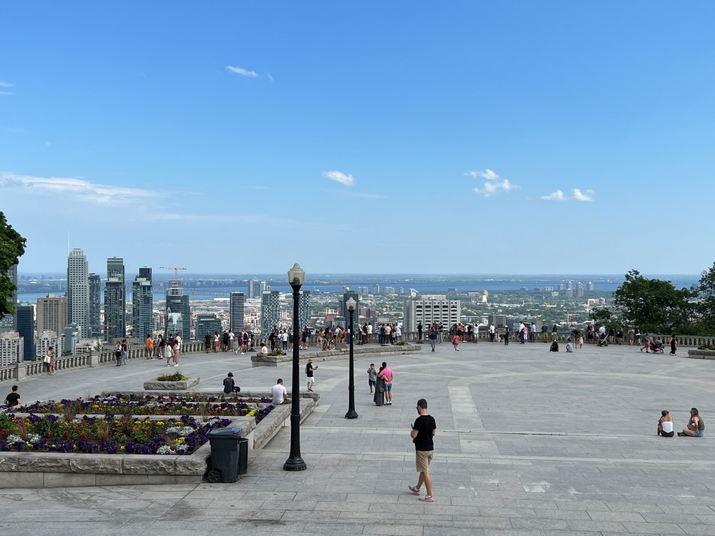 Het is nog een stukje lopen als we bij Chalet du Mont-Royal aankomen. Hier is het hele mooie uitzichtpunt met zicht op de skyline van Montréal.