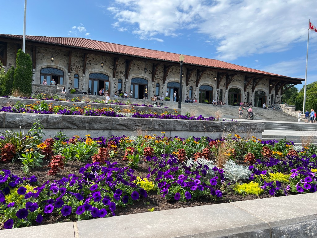 We halen nog een cappuccino en 2 flesjes water bij het Chalet Mont-Royal. Mooi gebouw omgeven door met bloemen aangelegde borders.