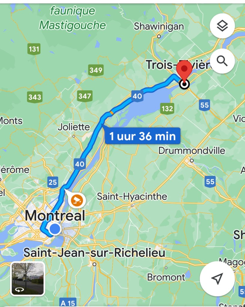 Vanaf Trois Rivieres is het nog 1,5 uur rijden naar Montréal. Het is alleen maar rijden over de snelweg. 20 km voor de stad wordt het al een stuk drukker. Goed opletten.