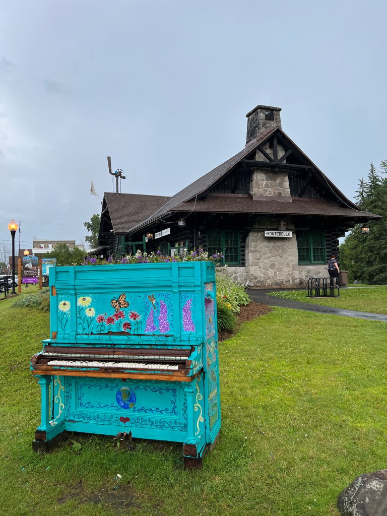 Onderweg bij Montebello willen we naar hotel Chateau Montebello. We zijn wel toe aan een bakje koffie. Het is het grootste hotel- en resortcomplex ter wereld. Helaas mogen we niet doorrijden naar het hotel. Een tegenvaller. Daarbij begint het behoorlijk te regenen, een enorme hoosbui! Wanneer het weer even droog is, scoren we koffie bij een chocoladewinkel. Je kunt er verder niet zitten, dus nemen de koffie mee naar de auto en drinken het onderweg op.