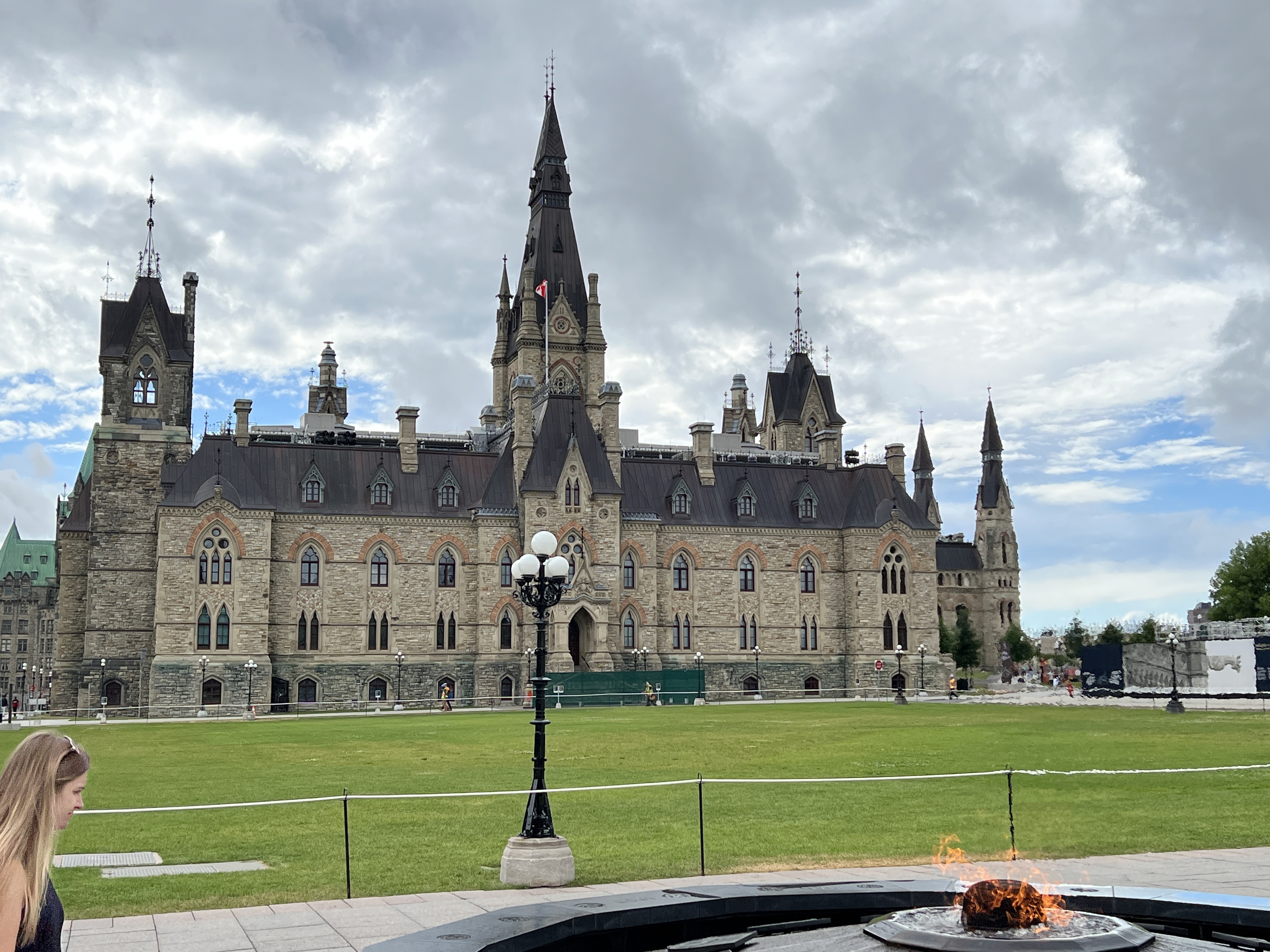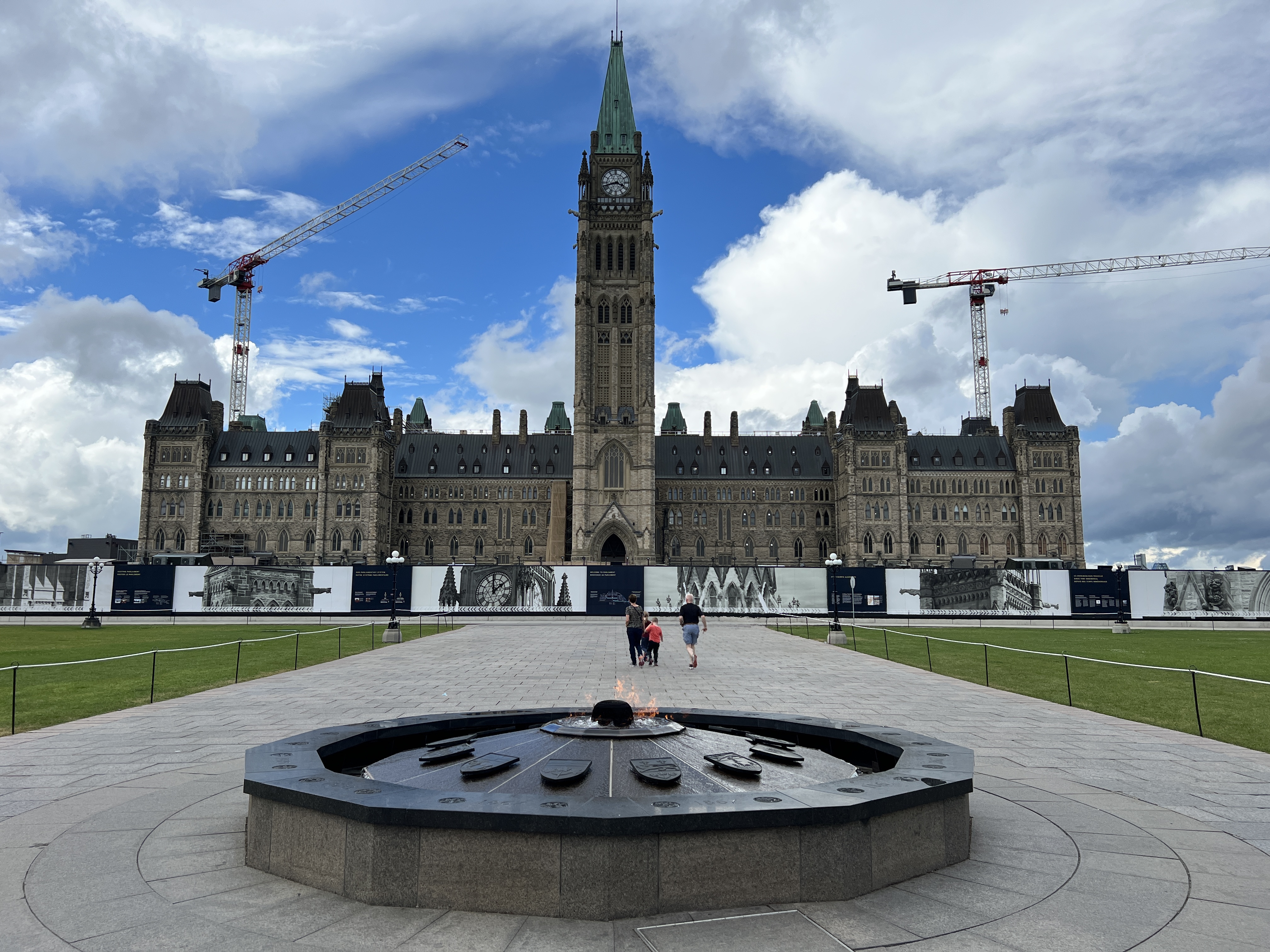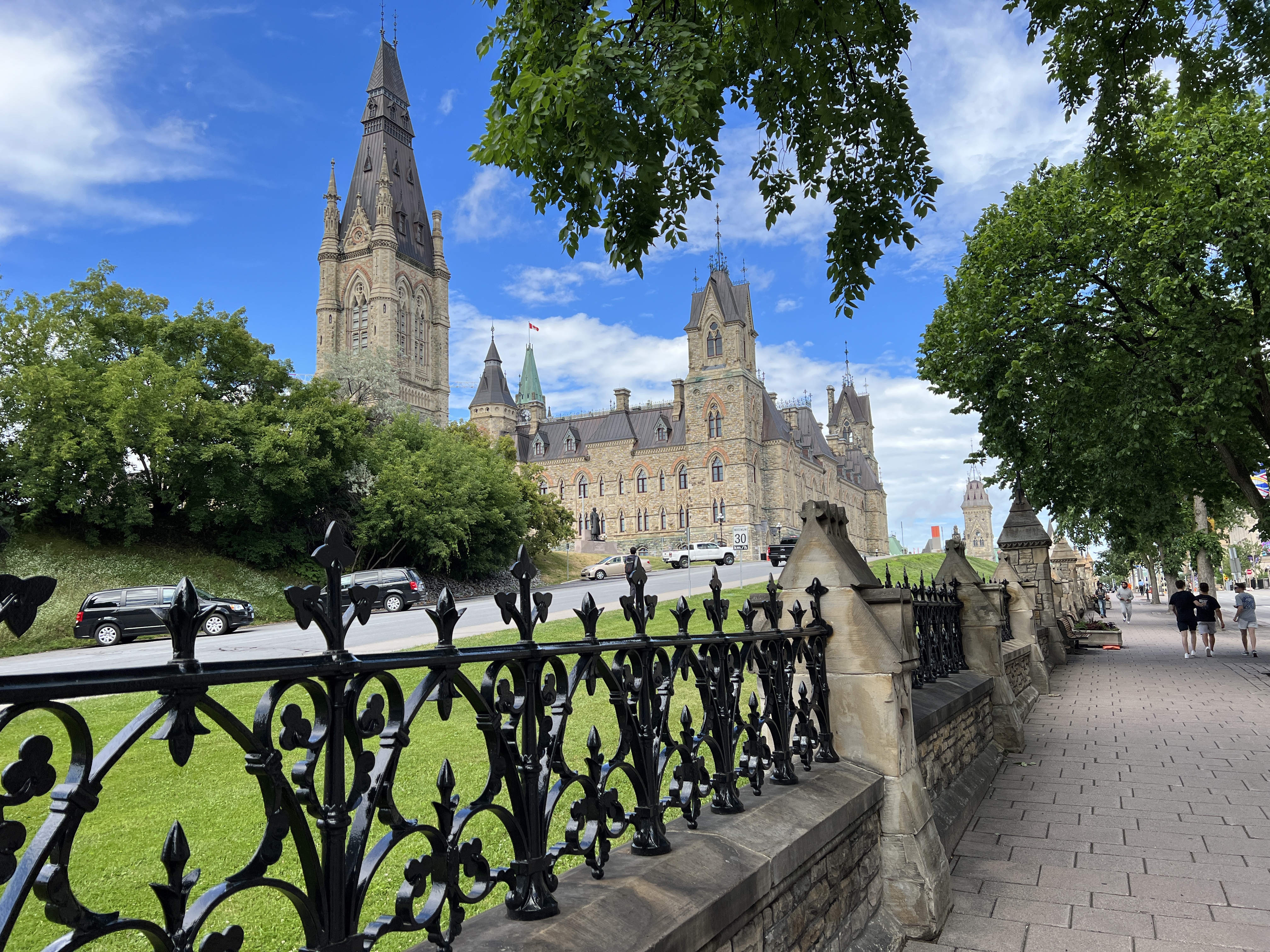 Aan de zuidelijke oever van de Ottawa River liggen op Parliament Hill 3 grote neogotische gebouwen waarin de Canadese overheid zijn thuisbasis heeft. In 1860 eerste steen al door de Engelse kroonprins Edward gelegd. De gebouwen worden nu gerestaureerd. De renovatie begonnen in 2019 en duurt 10 jaar lang. Een opvallend kenmerk is de 92 meter hoge Peace Tower.
