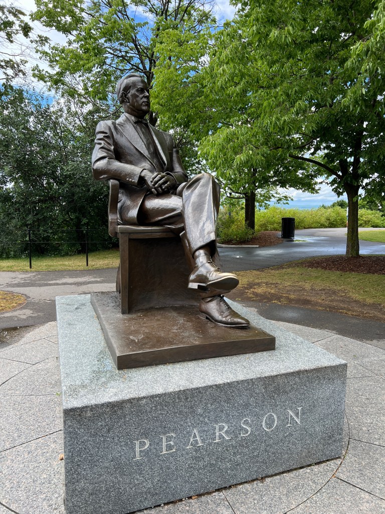 Net over tweeën rijden we over de Alexandra brug, die de Ottawa River overspant, de stad in. We parkeren de auto in een parkeergarage en eten een pecan croissant bij Boulangerie Moulin de Provence. Daarna gaan we een ronde door de stad maken. Het is inmiddels droog en de zon schijnt ook weer. We halen nog even een plattegrondje en gaan op weg.